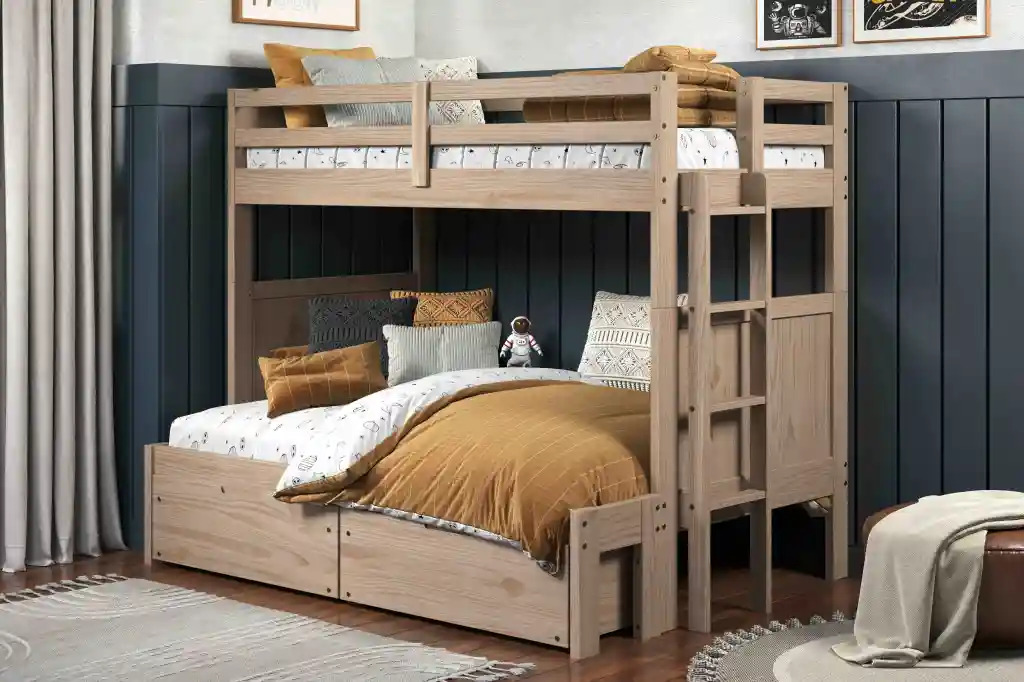 *Dune bunk bed with Ladder: 66.25”x83”x42” sandstone. With full kit. Optional: ubc, trundle, clip on bed tray.