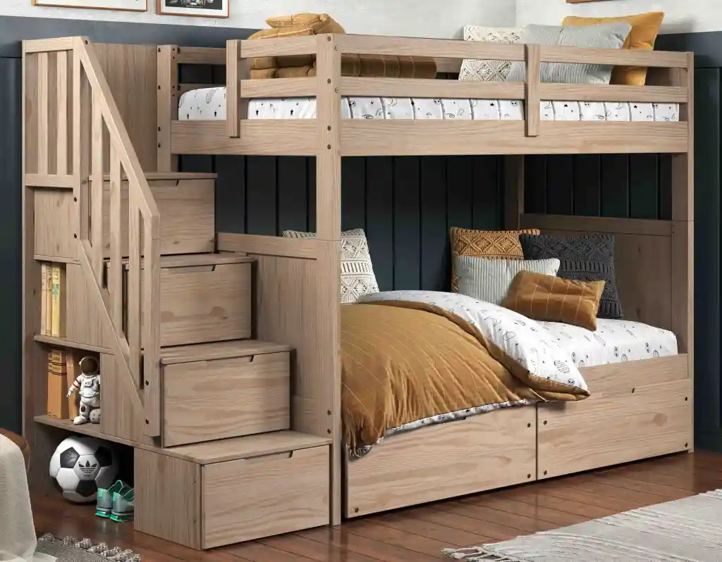 Dune bunk bed with Staircase: 66.25”x101”x42” sandstone