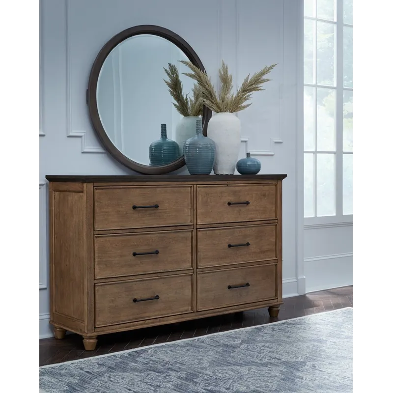 Vista 6 Drawer Dresser in Hickory and Coal ( Coal - Top / Hickory (finish) - Base)