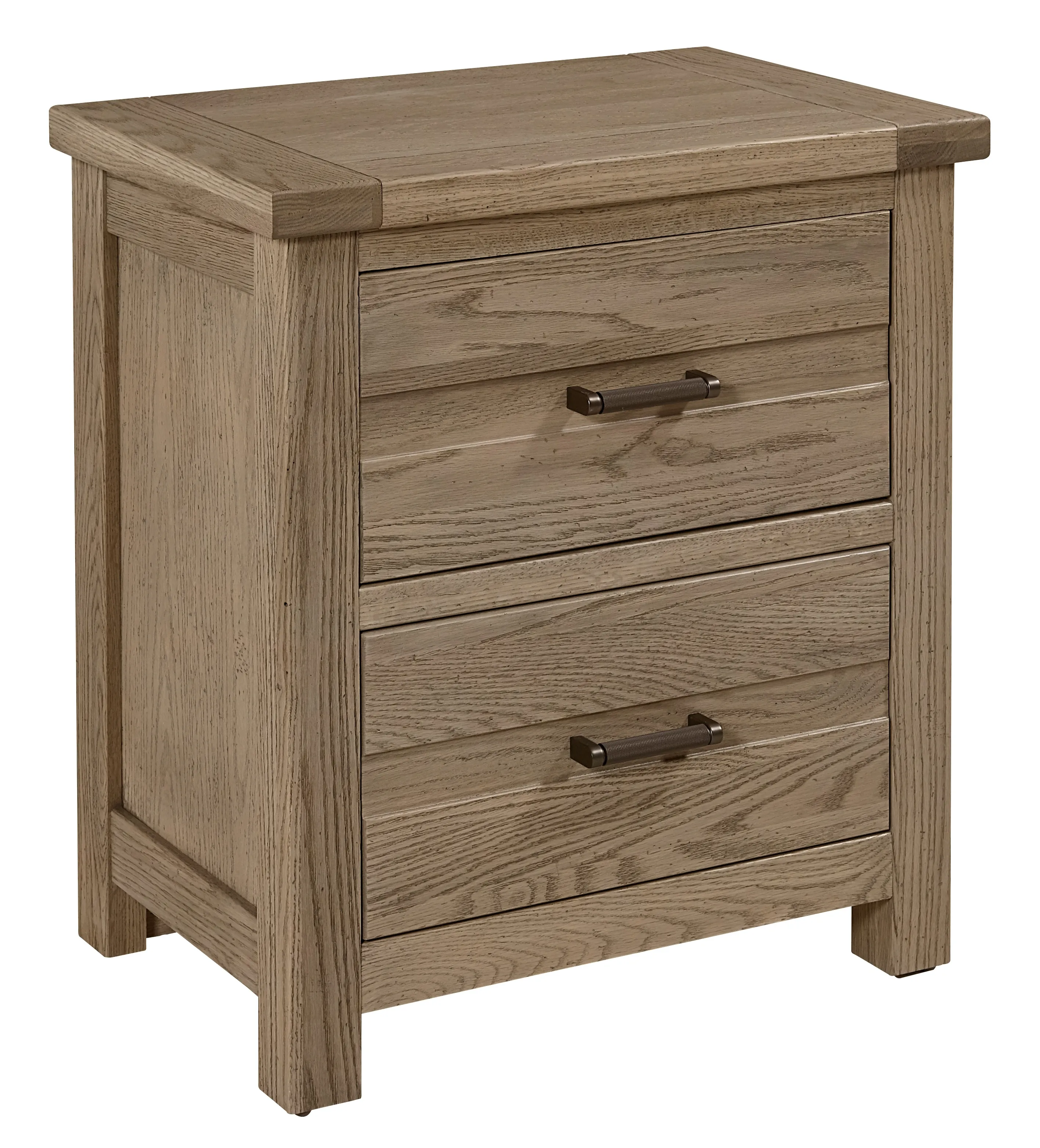 Crafted from solid Oak and Birch; this 2 drawer night stand has the perfect mix of casual rustic style and strength of solid wood to become a beautiful addition to your bedroom for years to come.