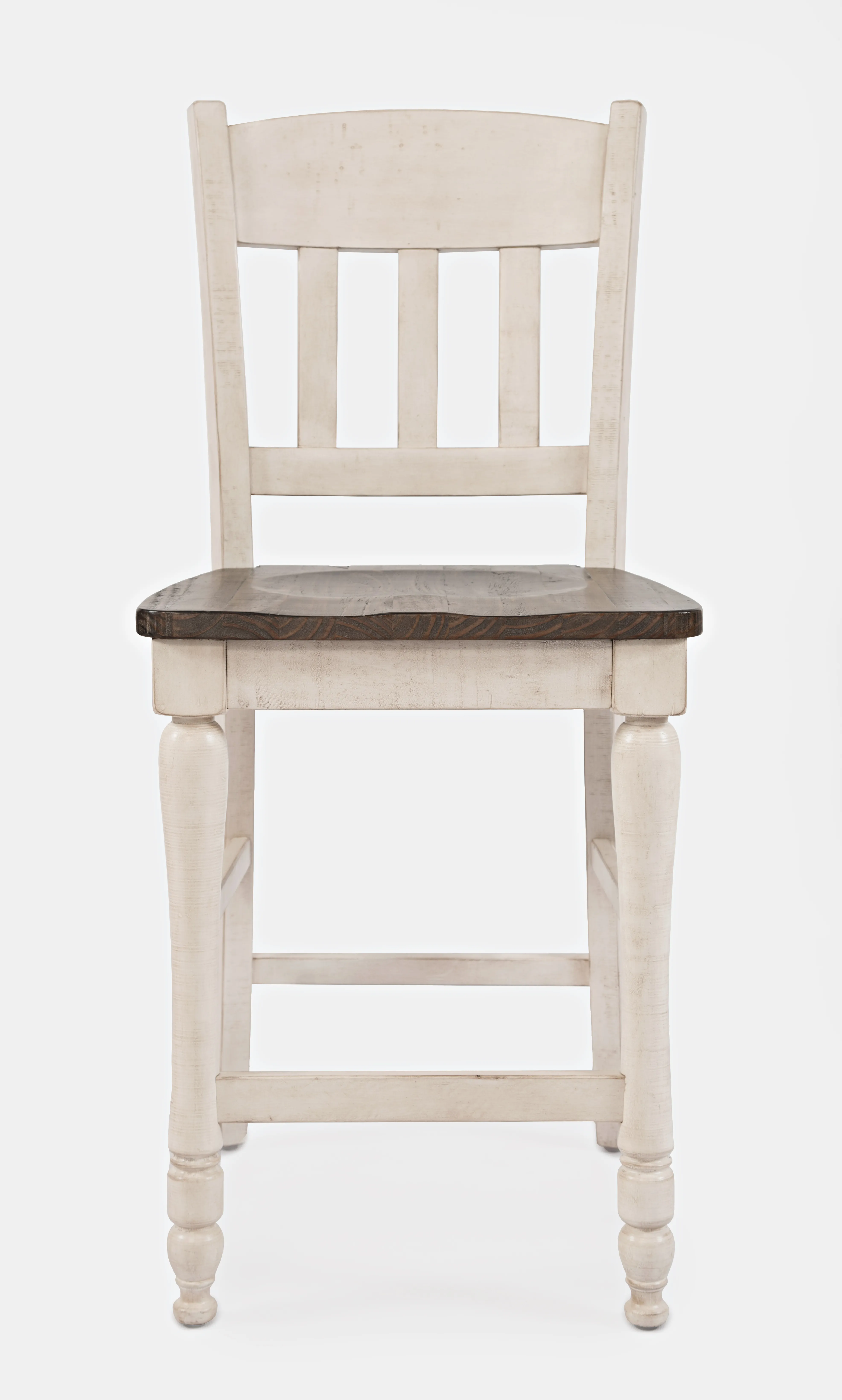 Experience the elegance of rustic farmhouse craftsmanship with the Madison County Collection. Made from solid reclaimed Pine, each piece showcases the natural beauty of the wood through unique weathering and intentional stress markings. Upgrade your dining room for entertaining guests or intimate family dinners with this set of two reclaimed Pine slatback counter height barstools.