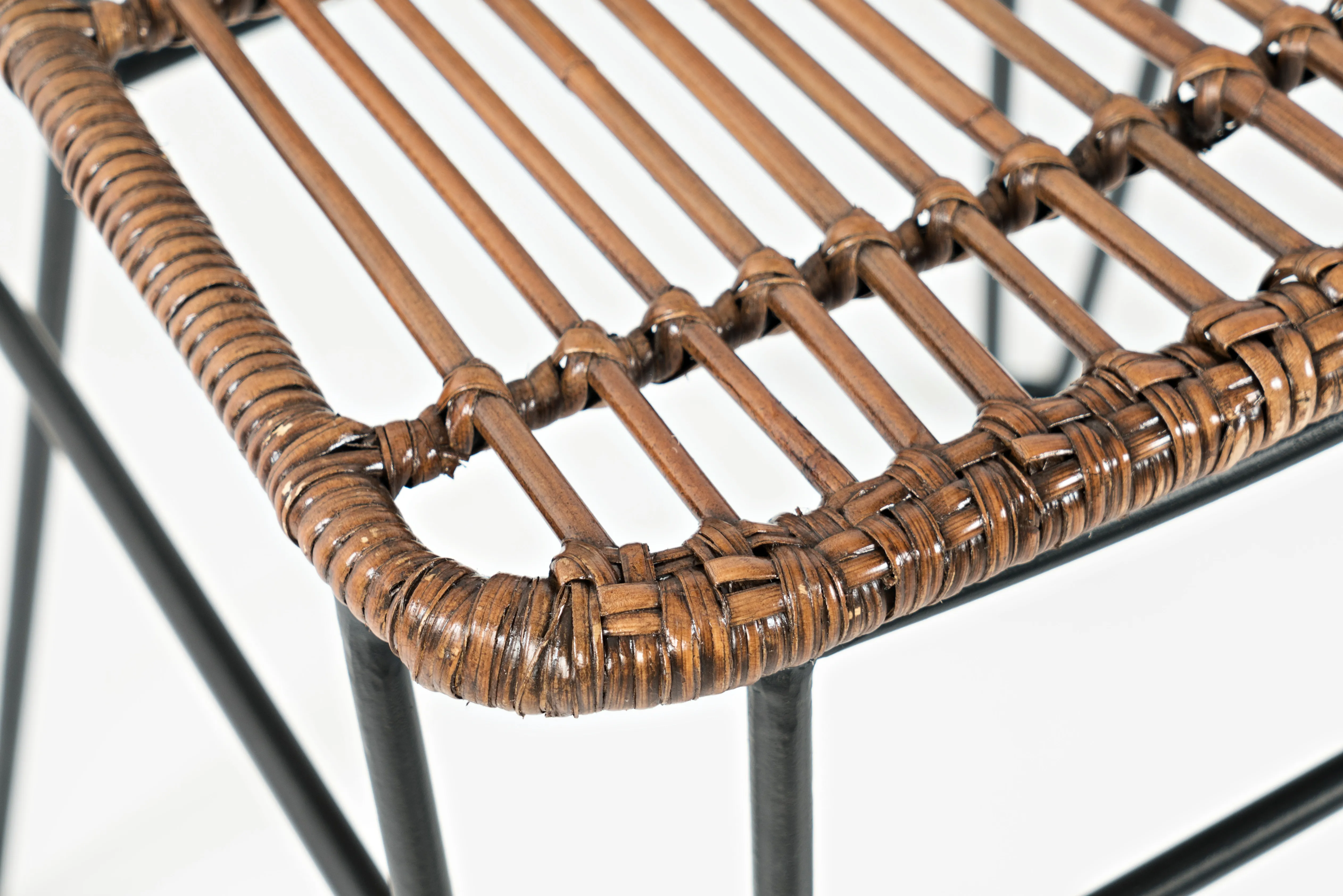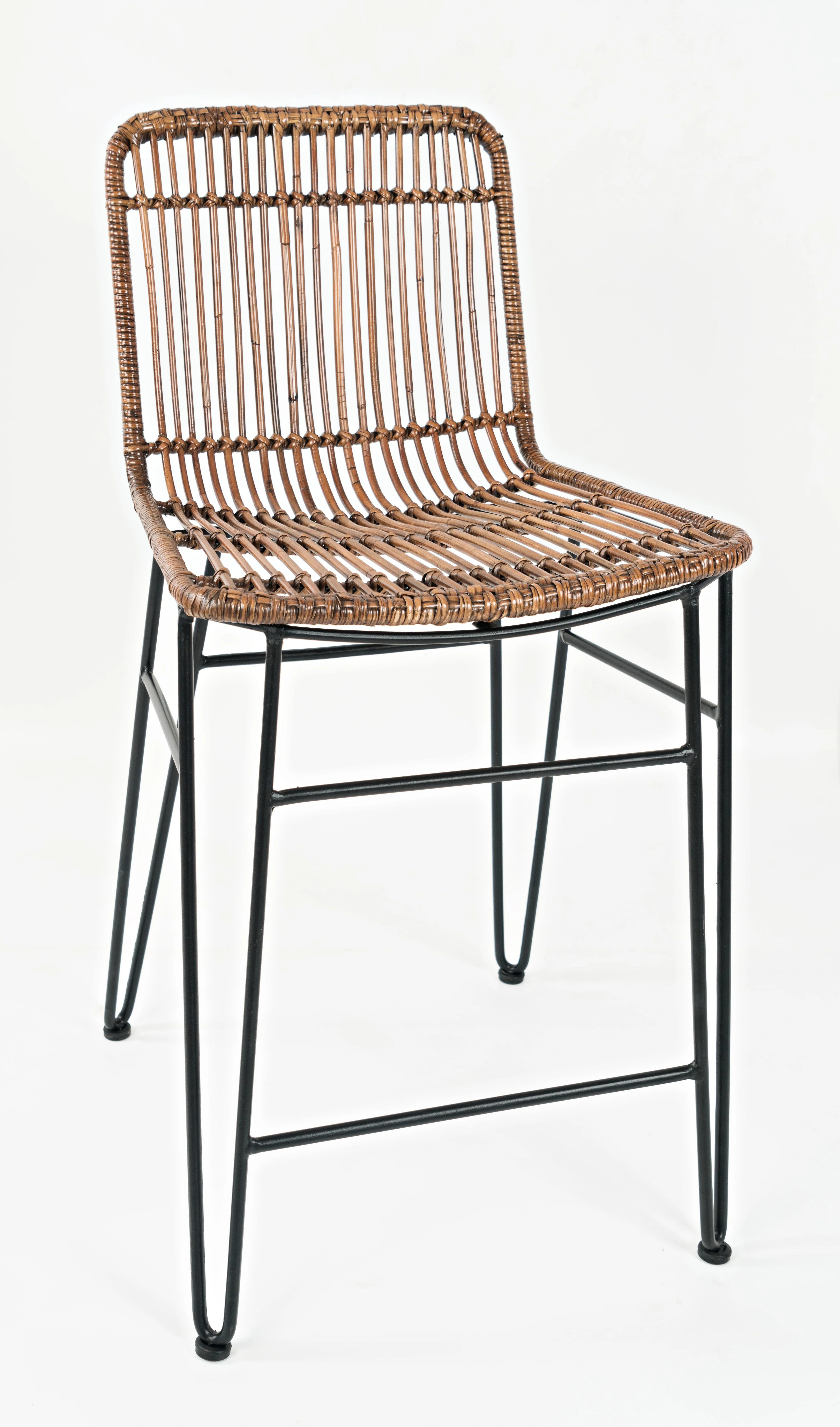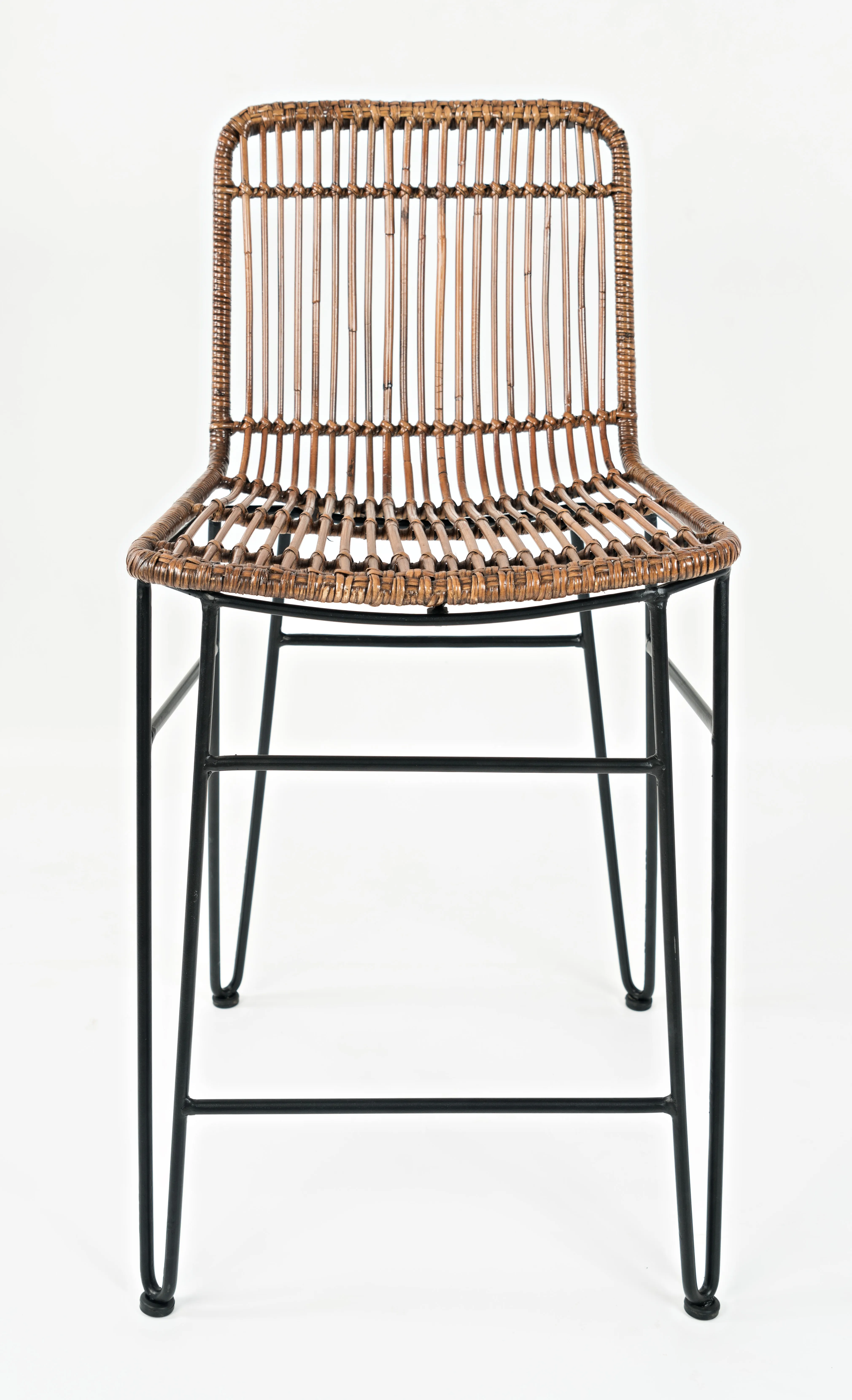 Natural Rattan hand-weaved and stretched over a sleek metal frame make this set of two stools the perfect new addition to your home. The exotic look and feel of the handcrafted seat is matched by the rich brown color that brings a unique flair to any home decor.