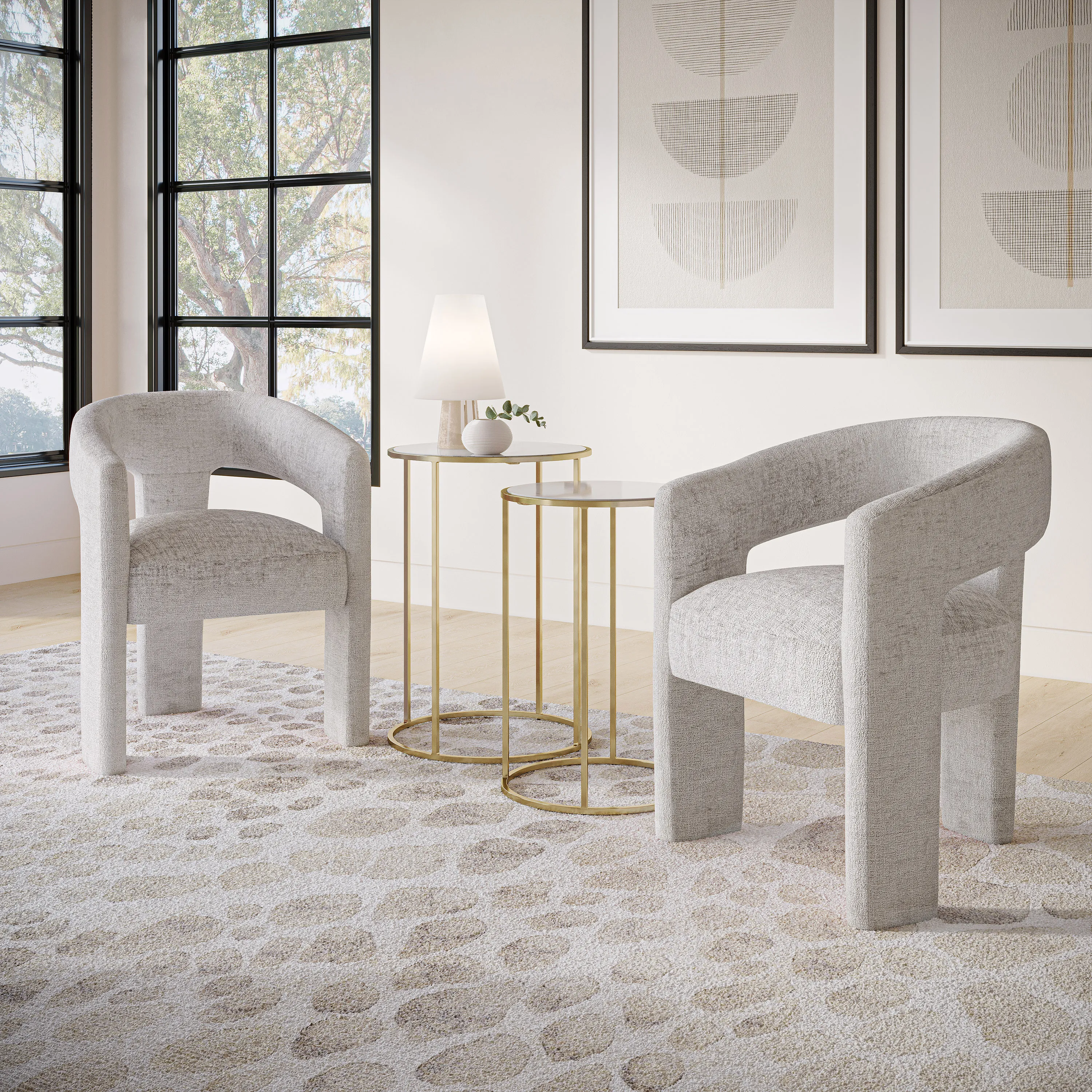 With a luxurious modern sculpted style and an absolutely stunning Jacquard fabric, the Gwen armchair is soft to the touch and the perfect upgrade for your home. The rounded back with integrated arms offers both flexibility and functionality, making it ideal for use as an accent chair in your living room or as guest seating in your dining room. The modern textured fabric on a deep seated frame provides visual depth and contrast, and no assembly is required so you can enjoy it right away.