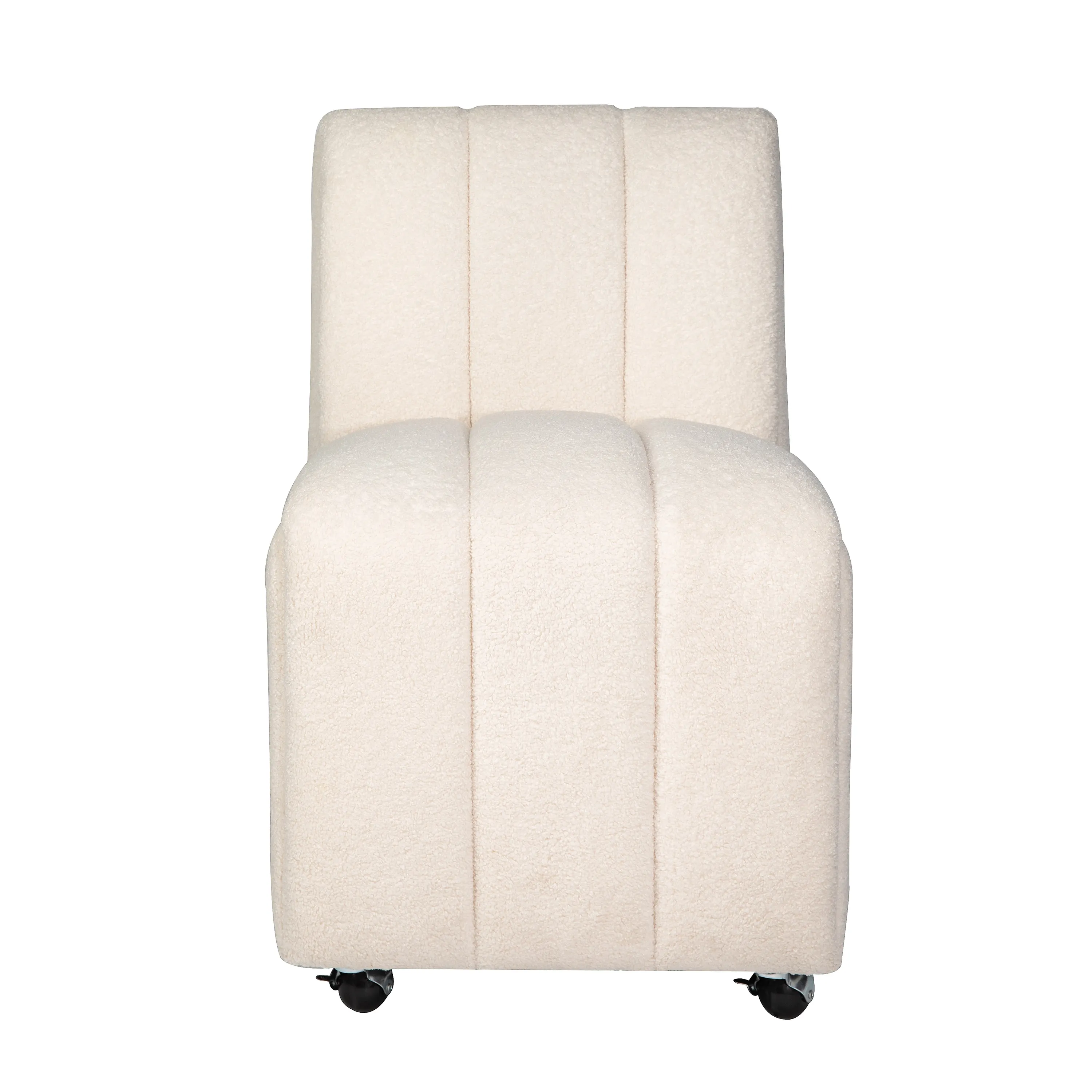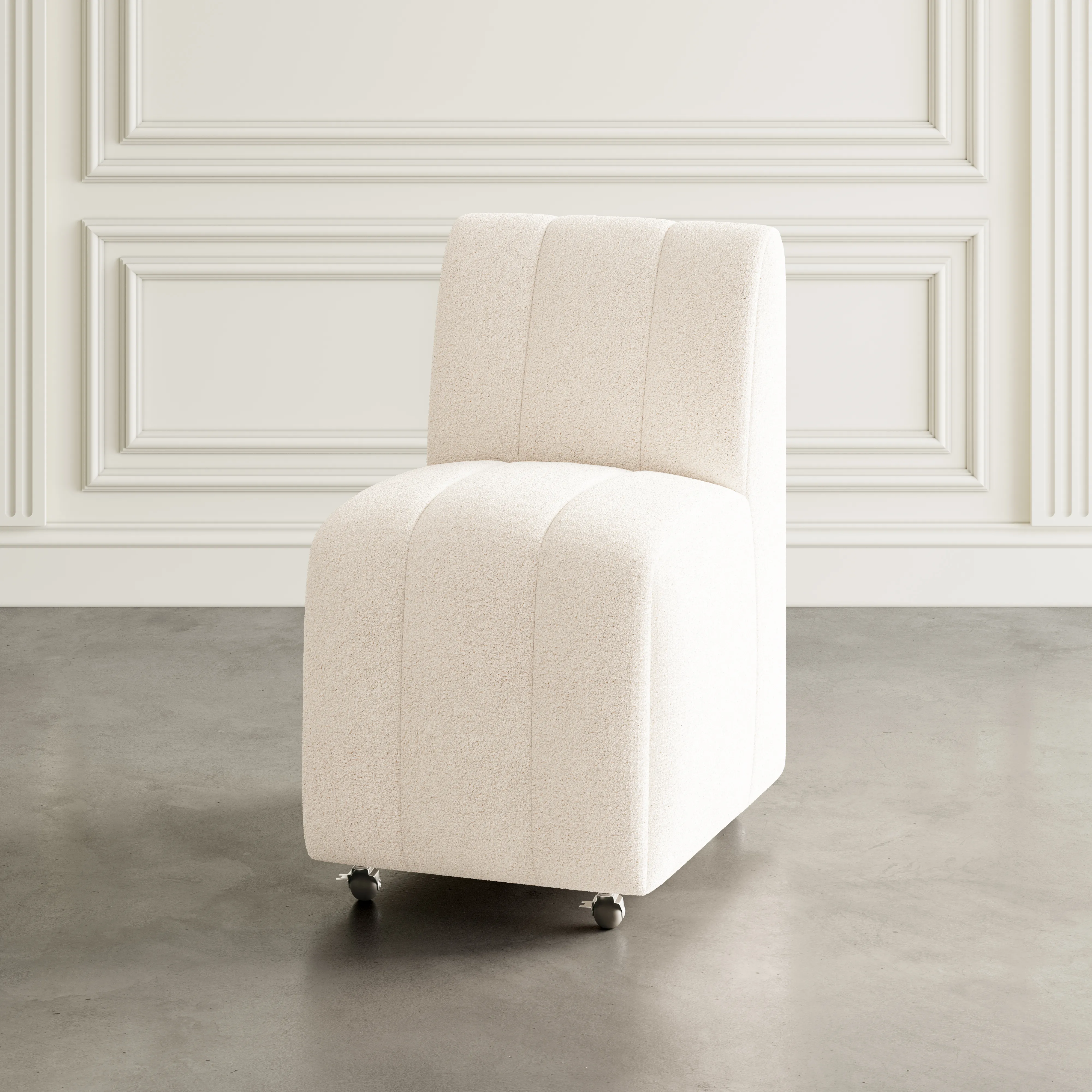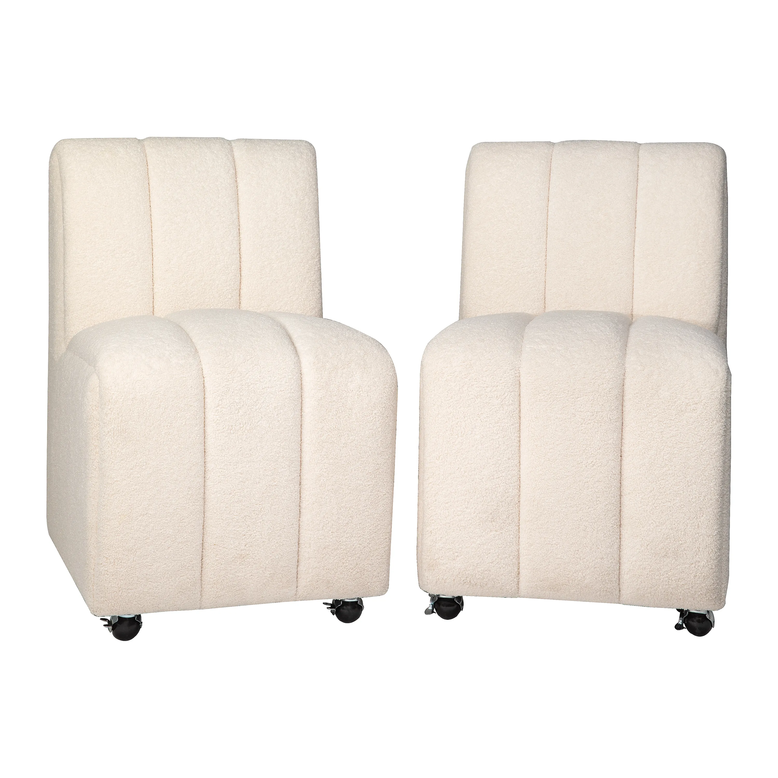 - -Set of Two Dining Chairs -Contemporary Luxury Style -No Assembly Required -Built-In Caster Wheels -Modern Ivory Boucle Fabric - -