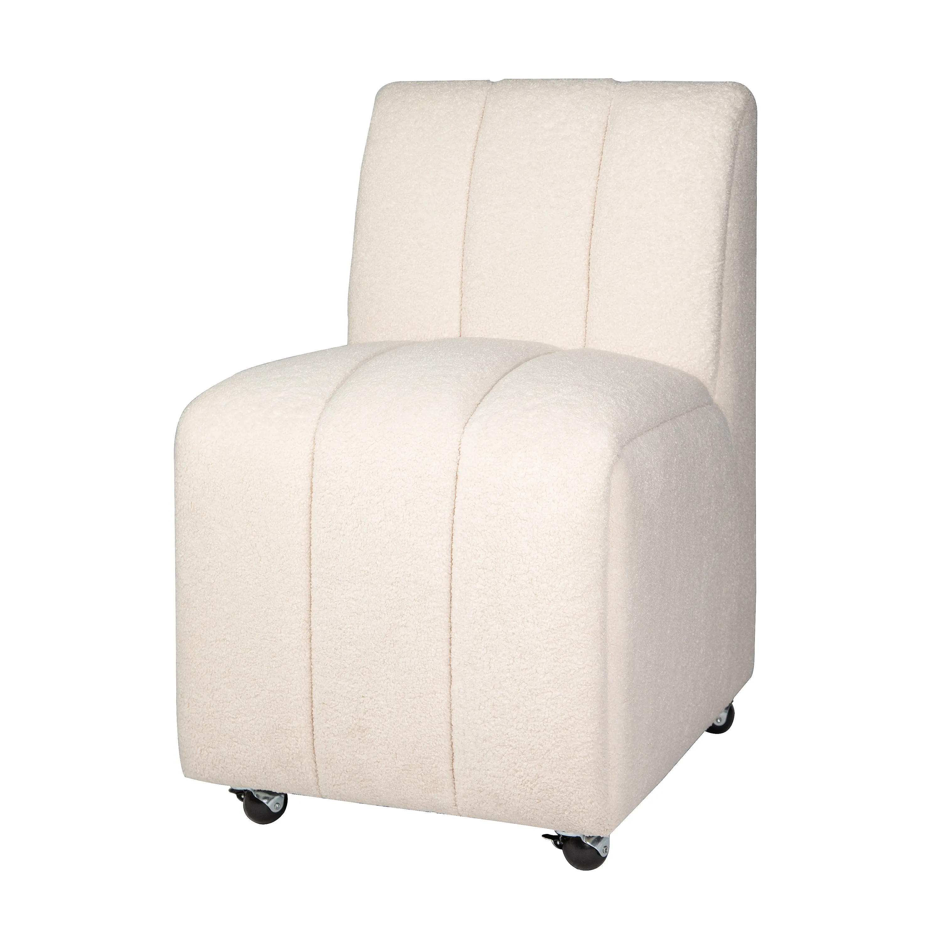 The Tess dining chair is a luxurious addition to any dining room, with its plush upholstery and sleek design. Crafted from high-quality materials and sophisticated Ivory Boucle fabric, this chair is both stylish and comfortable, perfect for those long dinners and special occasions with family. The plush, padded seat and backrest provide ultimate comfort, making it easy to sit and relax and includes caster wheels to make moving a breeze.
