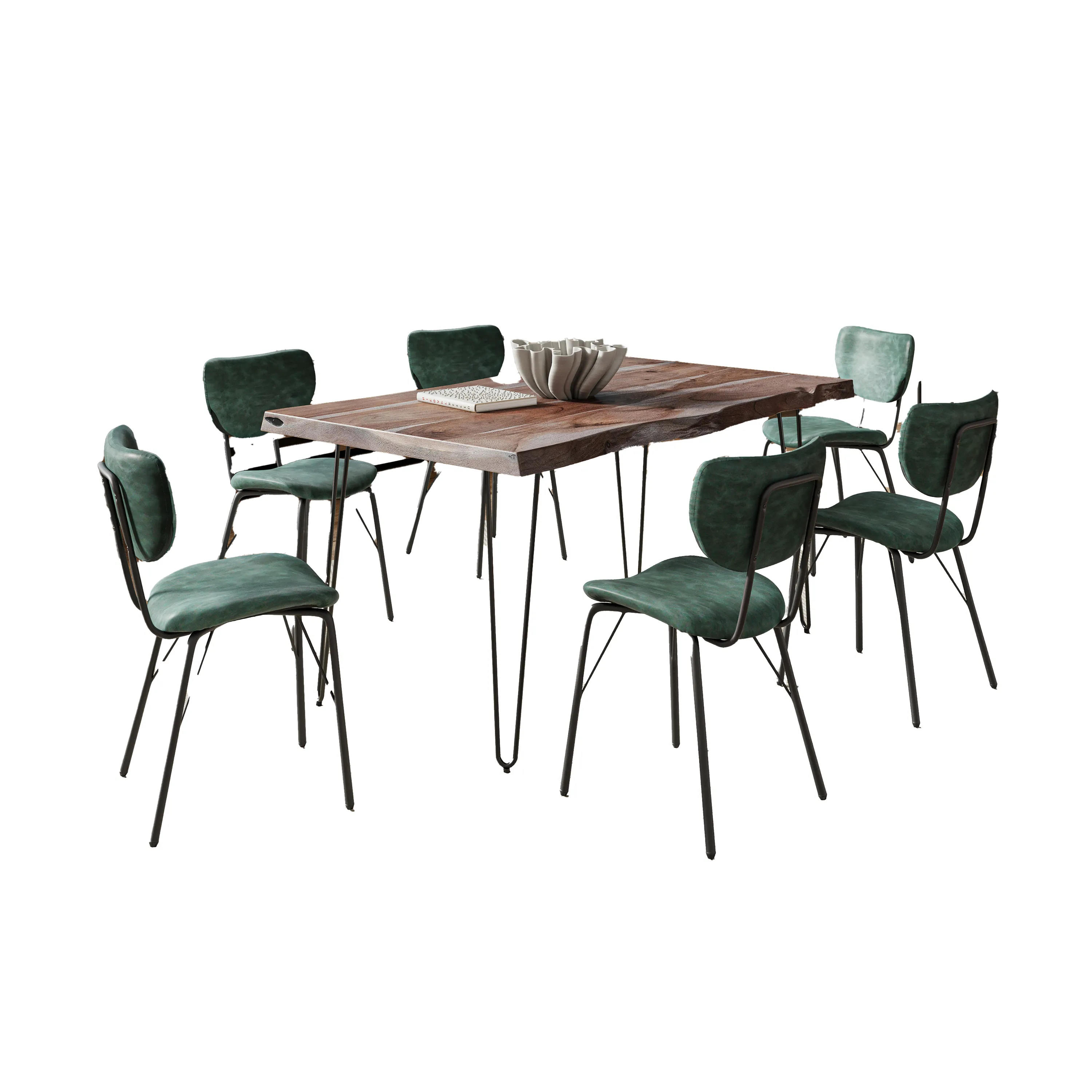 - -Set Includes 60 Inch Solid Wood Dining Table and Six Upholstered Chairs -Mid-Century Modern Faux Leather Split-Back Upholstery -Unique Variations in Live Edge to be Expected -Modern Hairpin Legs - - -