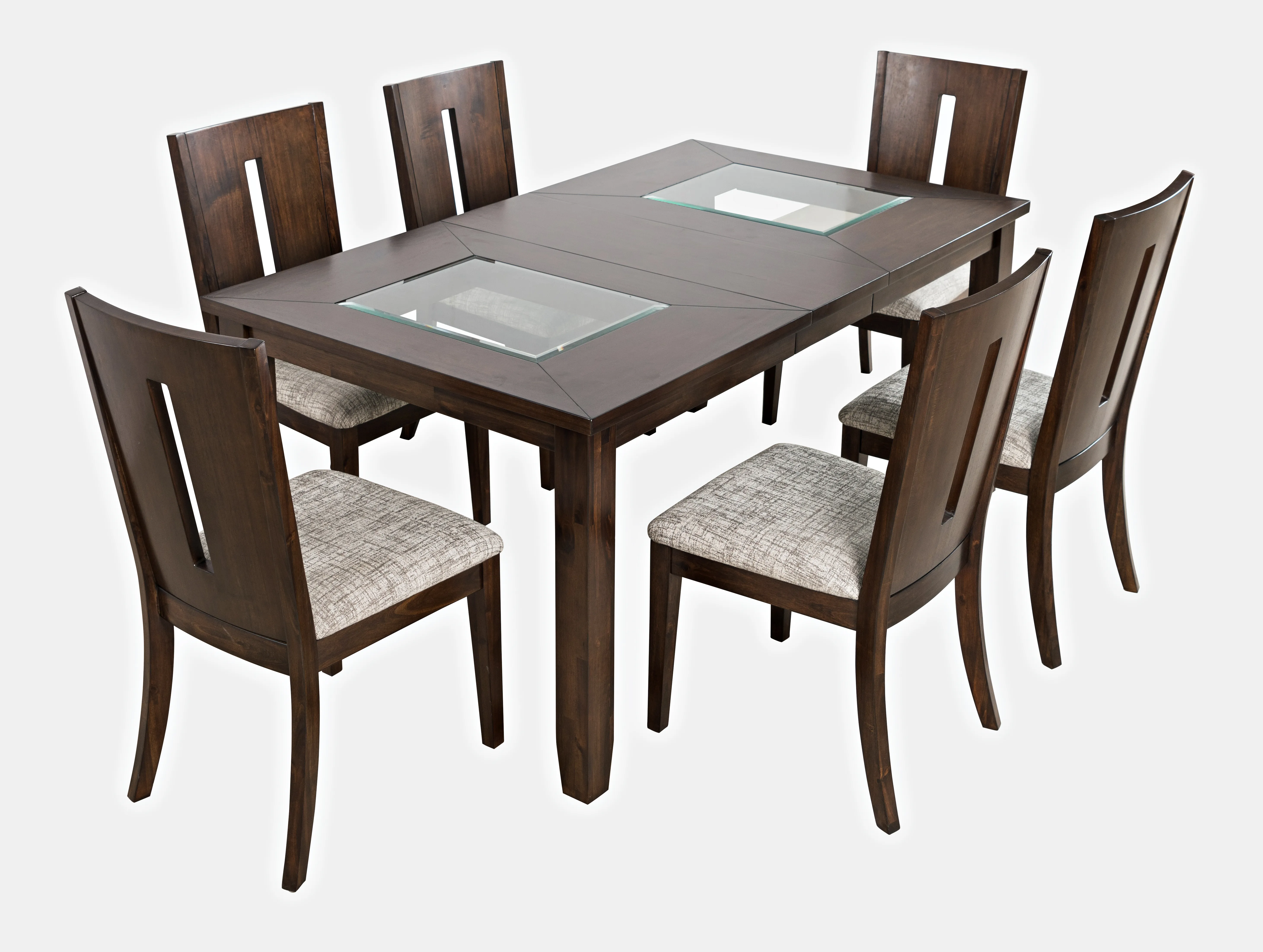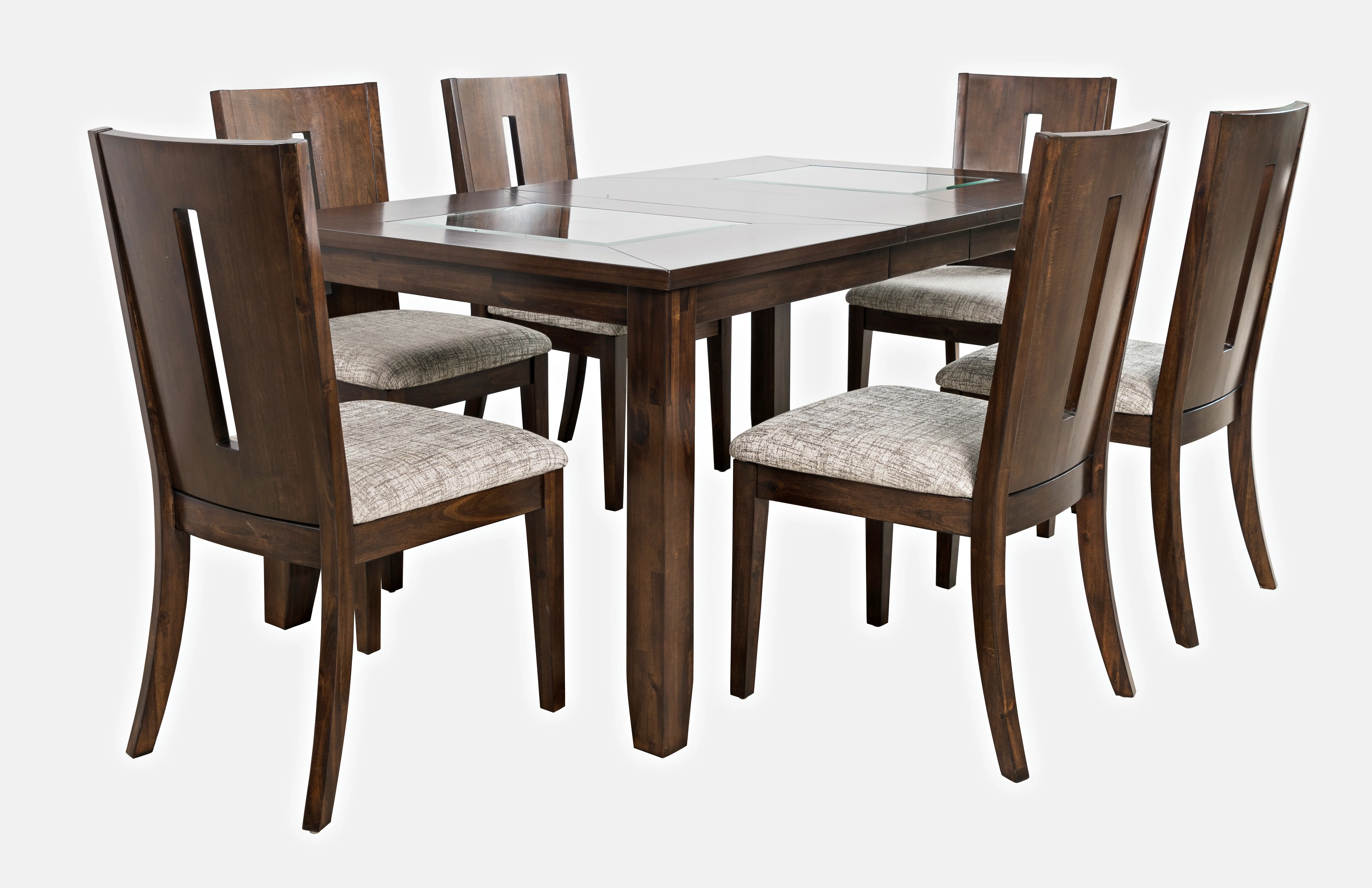 - -URBAN ICON RECTANGULAR TABLE + 6 CHAIRS -Dining Set Contains: -2005-66 -2005-390KD - -Heather Gray Upholstery -