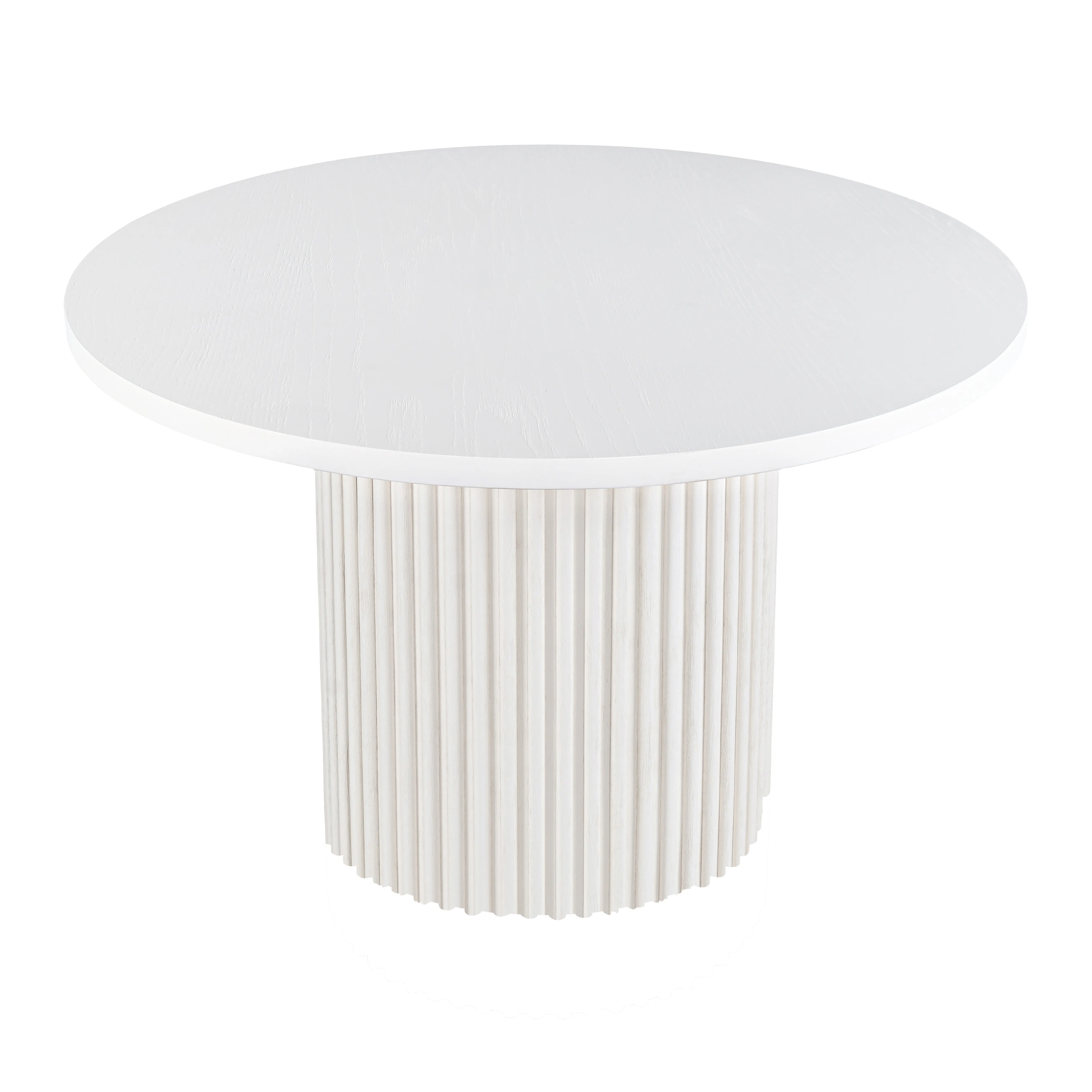 • -Set includes One Counter Height Dining Table and 4 Barstools -Sculptural round table with fluted pedestal base -Barstools crafted from solid rubberwood -Durable table made with rubberwood and wood veneer -Mid-century inspired design with timeless appeal - -