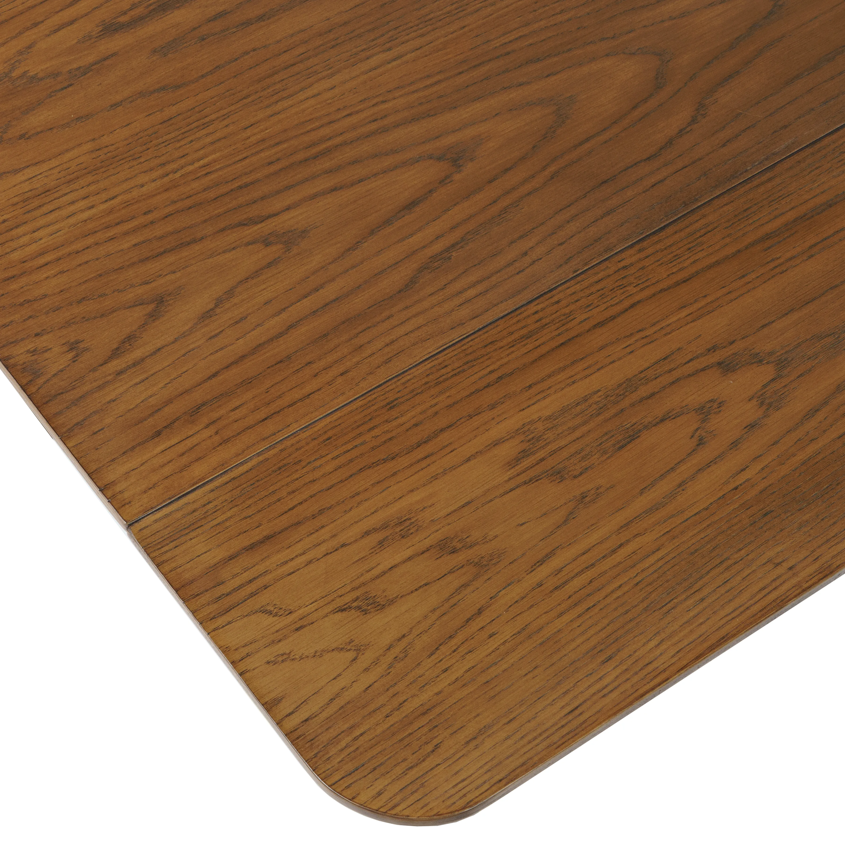 The Bowie 66" Harvest Mid-Century Modern Drop-Leaf Dining Table combines timeless design with practical versatility. Crafted from durable rubberwood with a beautiful veneer finish, this table features two unique 9" drop-leaf extensions on the long sides, allowing you to customize its depth from 24" to 33" or a full 42" to suit your needs. Whether you need a compact setting for everyday use or a larger surface for hosting guests, this table adapts effortlessly to your lifestyle.The sleek mid-century modern design is enhanced by tapered solid wood legs, providing stability while adding a stylish touch to your dining space. With its 66" length, the Bowie table offers ample seating while maintaining a streamlined profile. The smooth, warm harvest finish complements both modern and transitional interiors, making it a versatile centerpiece for any room. Perfect for apartments, breakfast nooks, or dining areas, this table offers both form and function with its customizable size and sophisticated design.