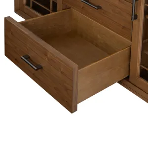 Adjustable shelves can accommodate storing up to seven bottles of wine each and can be flipped for a solid shelf surface