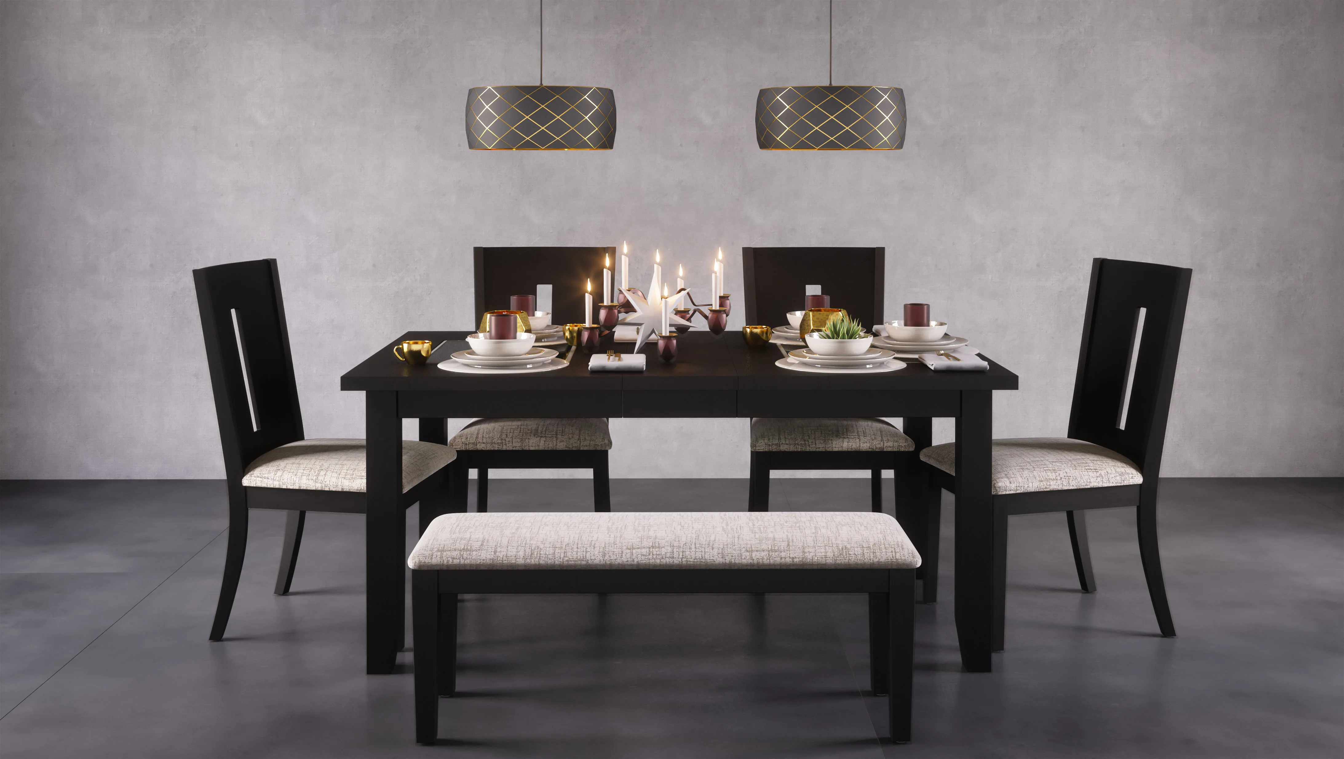 Contemporary style with a unique modern fabric, this Urban Icon 45" Upholstered Dining Bench features three unique color options and modern beveled edges. Available In White, Black, and Merlot finishes.