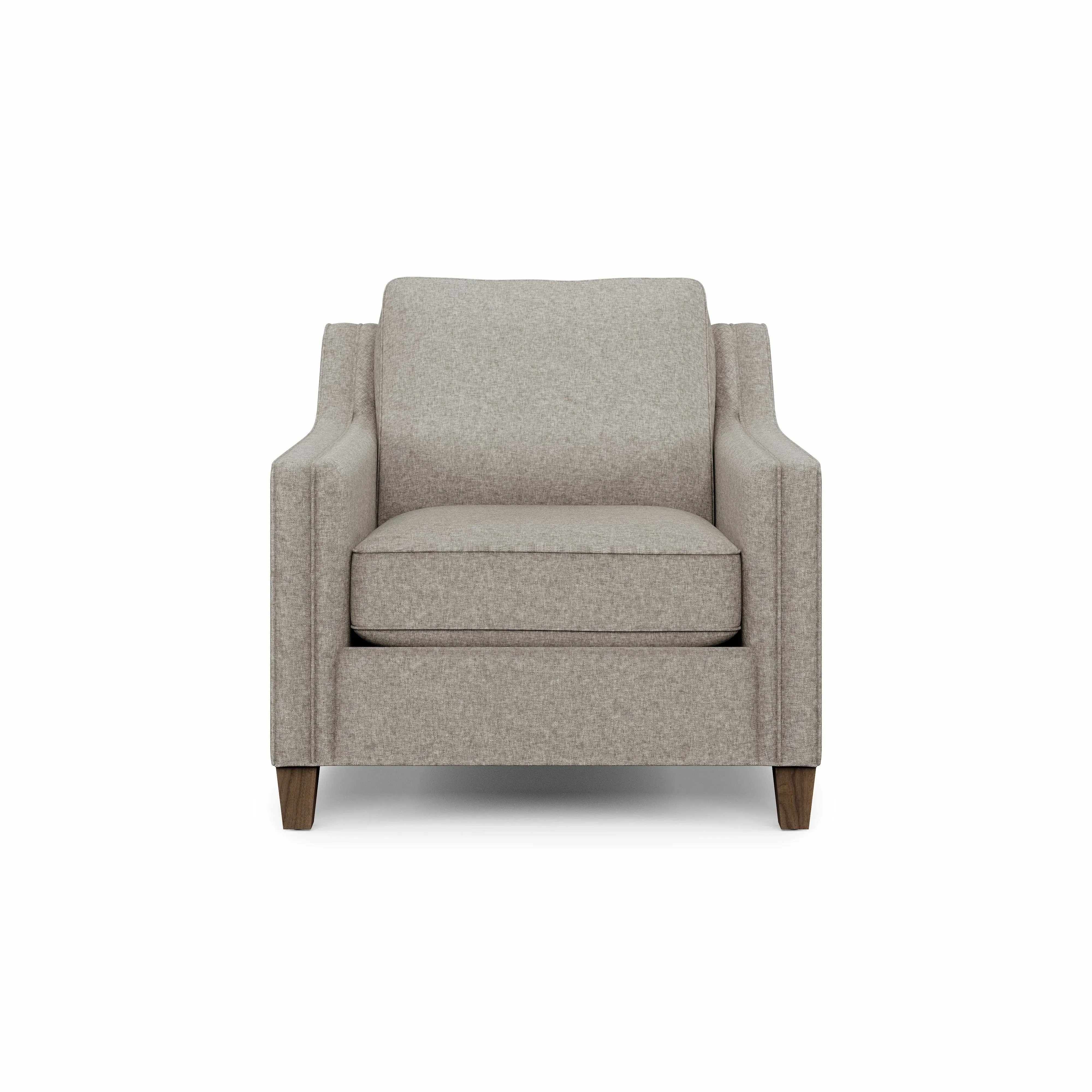 Simplicity and elegance combine in a sophisticated silhouette with the Finley chair. Featuring a distinctive profile with sloped, tapered track arms and attractive welt detailing, this stationary design is an elegant statement for any home. The semi-attached back and removable, reversible seat cushion make it easy to clean and maintain your chair. This stately frame sits on sleek, square-tapered legs and is available in hundreds of fabric options to suit your style.