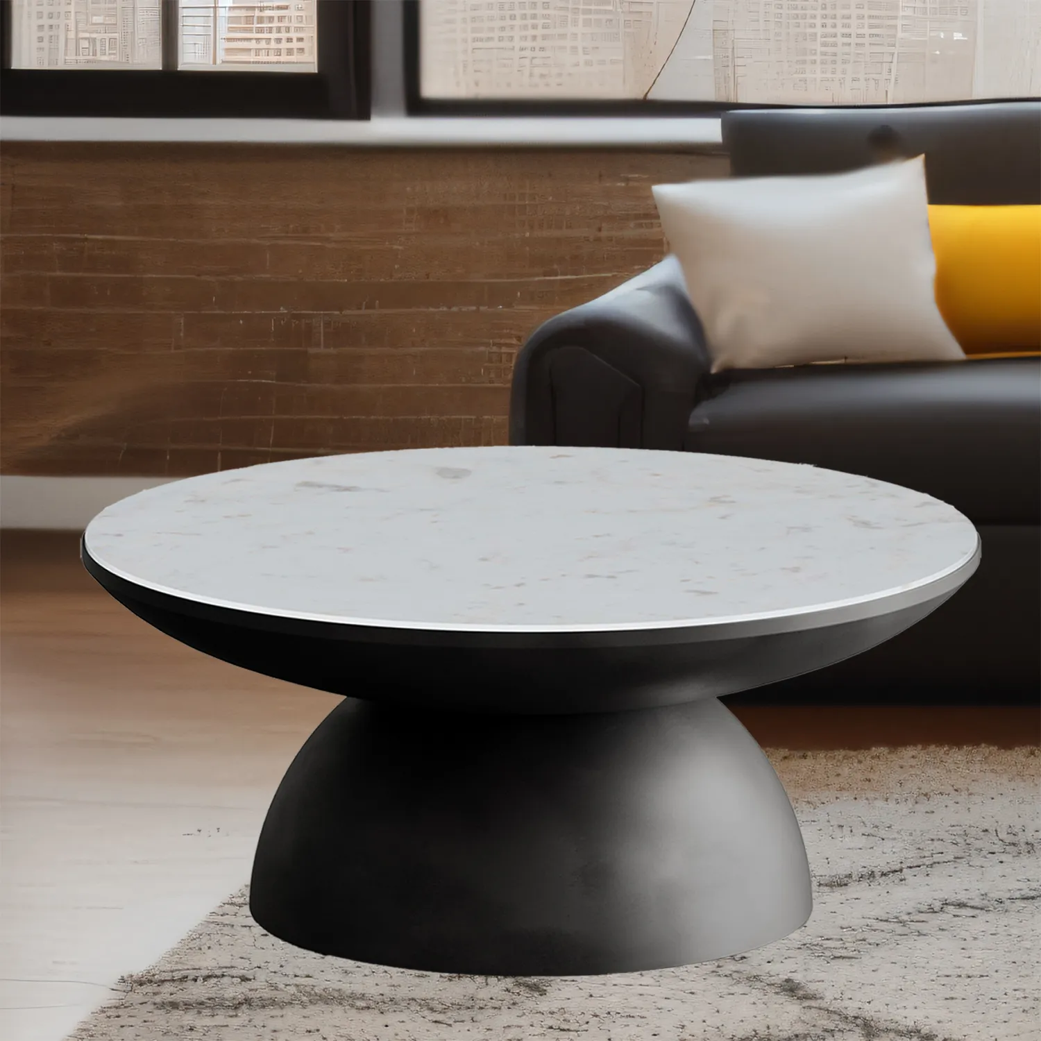 With a stunning combination of solid marble and modern minimalist luxury this 35" Round Coffee Table is the perfect upgrade you have always wanted in your home. The round pedestal base is made from cast iron and the top is over half an inch of genuine solid marble with a unique grain pattern on each table and requires absolutely no assembly.