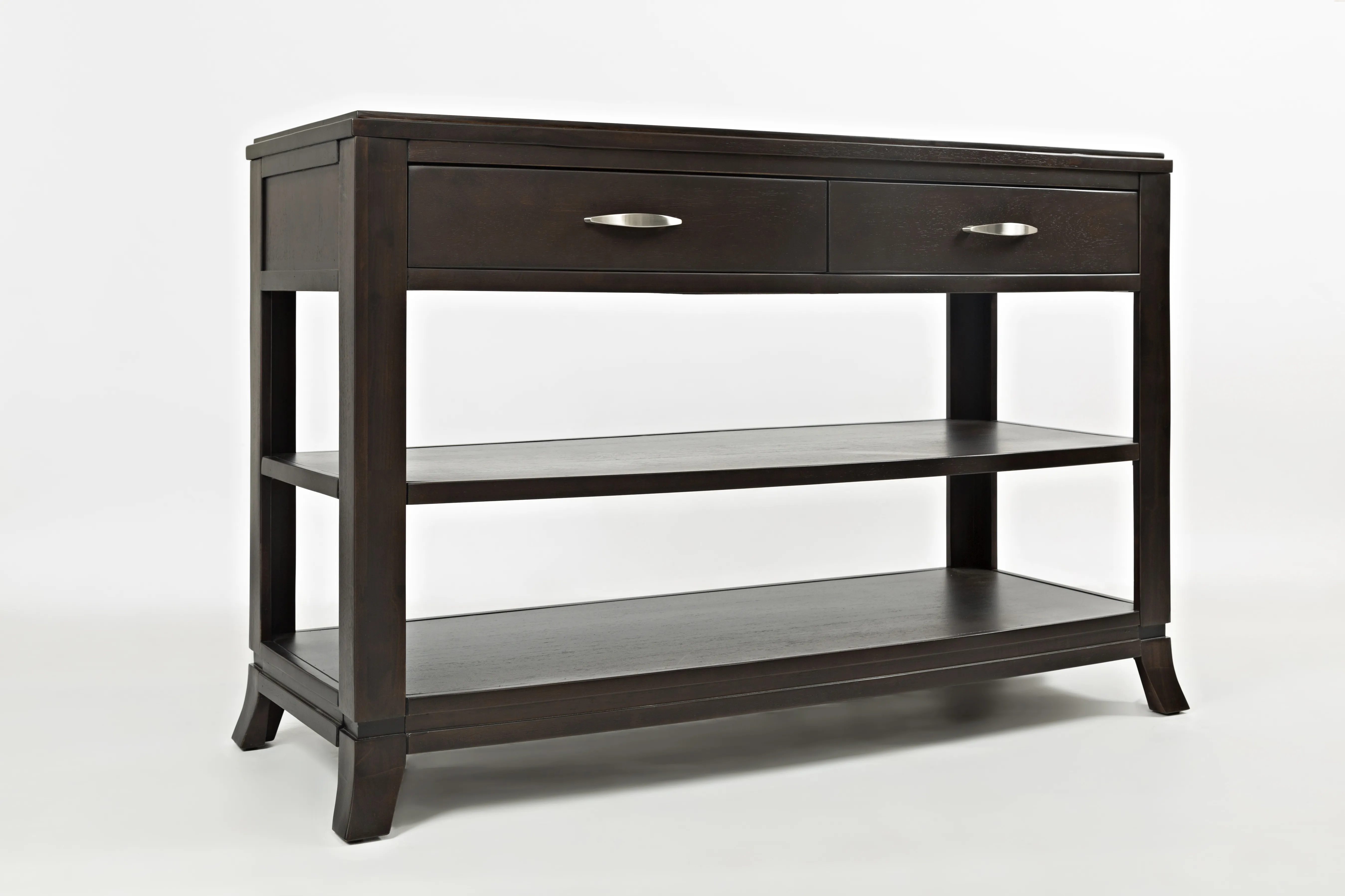 - -Smooth and dark merlot -Brushed nickel hardware -Drawer Dimensions: 19.5"W x 14.5"D x 3"H -Shelf Dimensions: 48.25"W x 18.75"D x 8.5"H -For residential use only - -