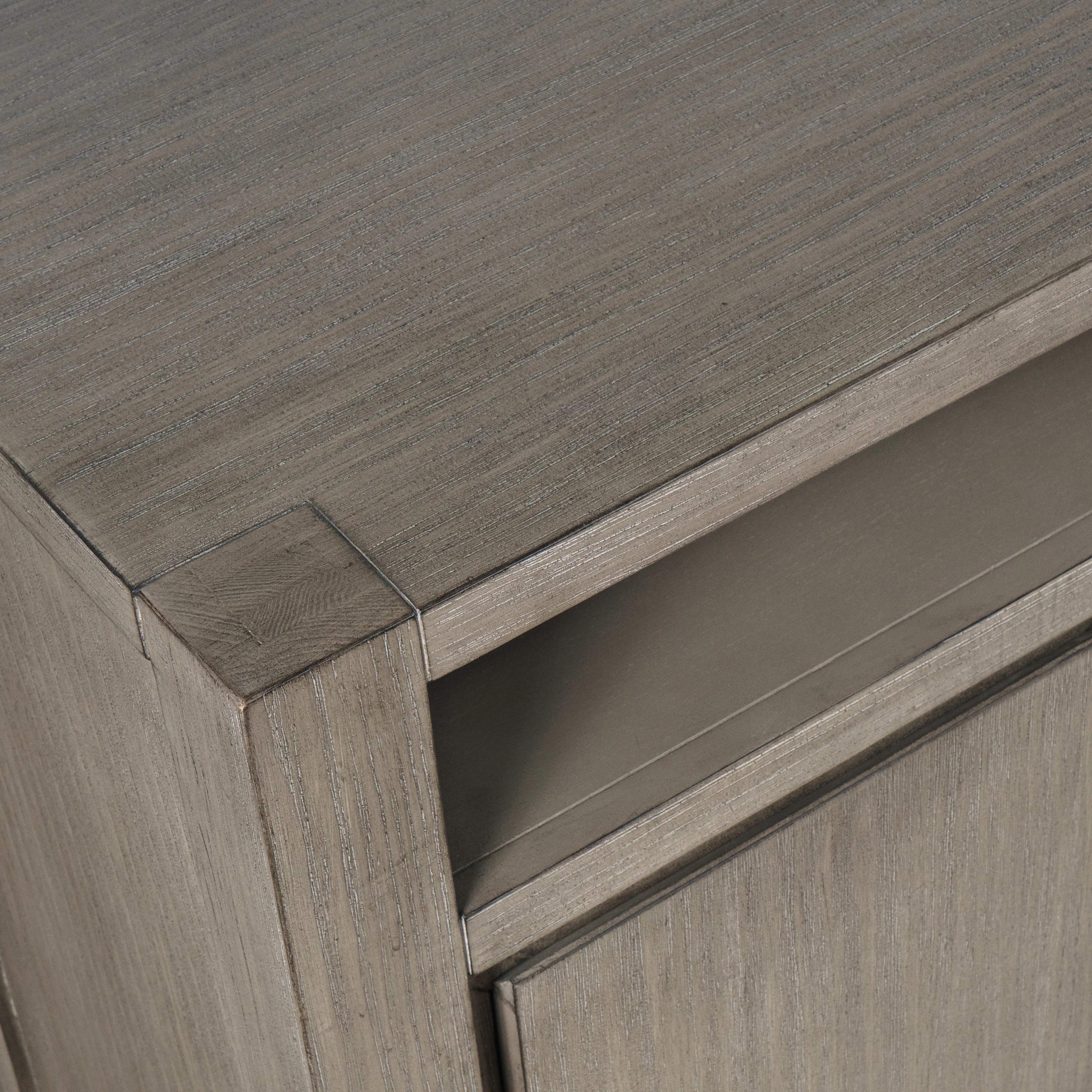 • -Crafted from pine and veneer -Measures 60 inches wide for versatile placement -Four doors open to concealed cabinet storage -Adjustable interior shelves for flexible organization -Cable management cutouts keep wires tidy and hidden -Modern transitional design with framed doors and simple hardware -