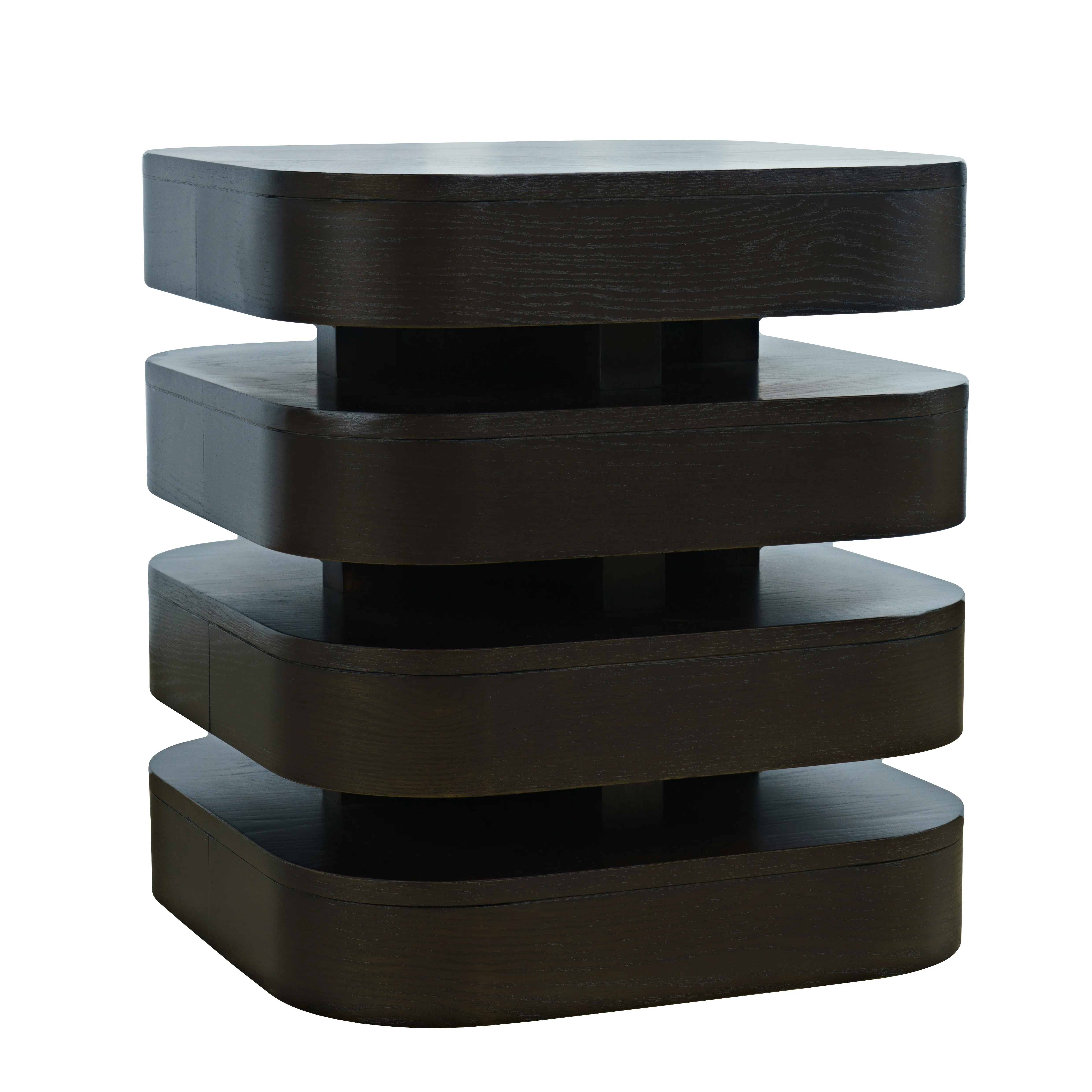 Elevate your living space with our Brix Mid-Century Modern Layered Square End Table, a fusion of style and functionality. Crafted with the same attention to detail as its round counterpart, this piece features a square shape with rounded corners, adding a touch of sophistication to any room. Measuring 22 inches on each side and standing at 24 inches high, it offers ample surface area for your favorite decor pieces. Like its siblings, it boasts three layered levels crafted from a blend of oak and engineered wood, ensuring both durability and elegance. Its stationary design provides stability, making it a versatile addition to any home decor scheme.