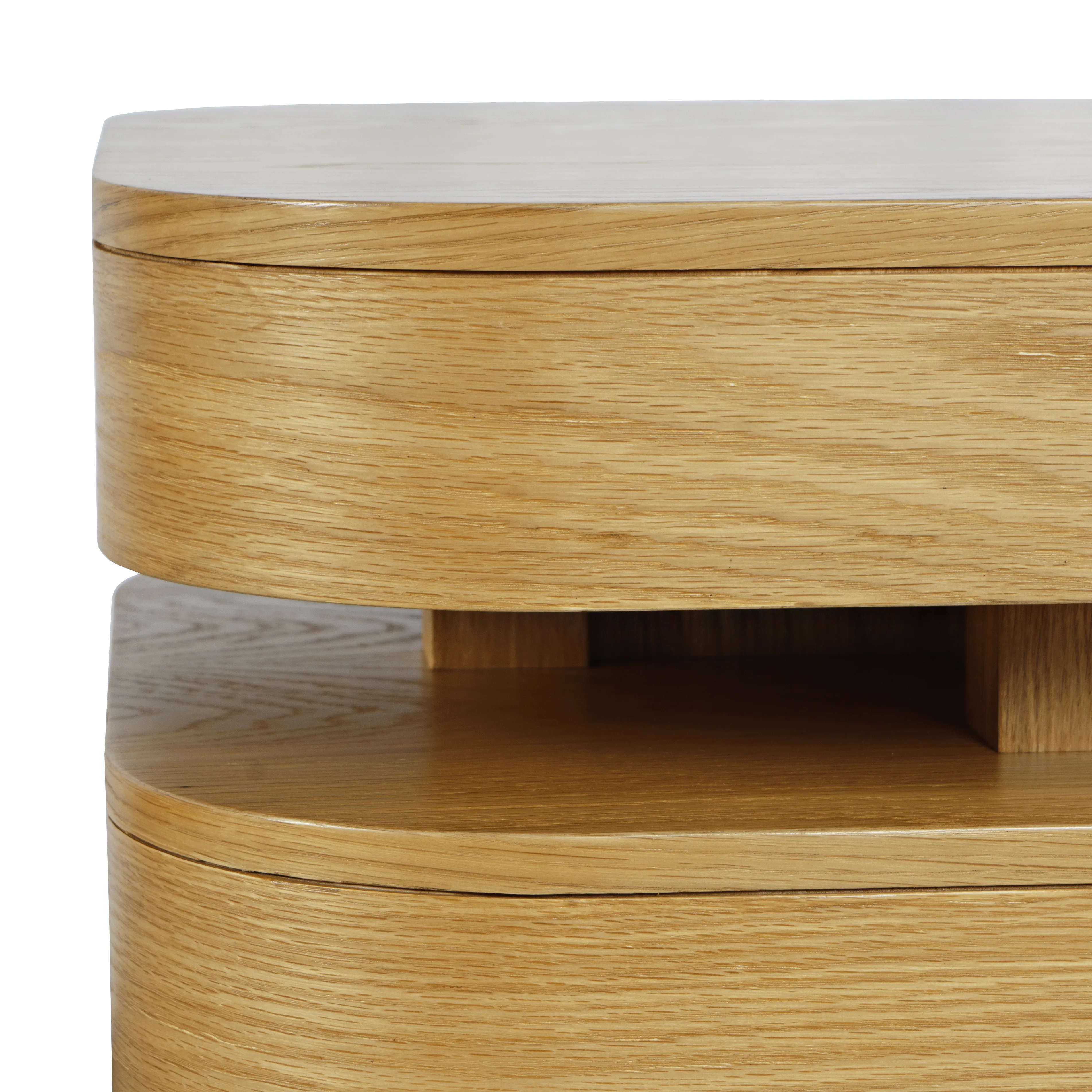 - -No Assembly Required -Oak and Engineered Wood Construction -Unique Mid-Century Modern Design With Floating Wood Layers -Sculptured Modern Silhouette -Perfect for the Den