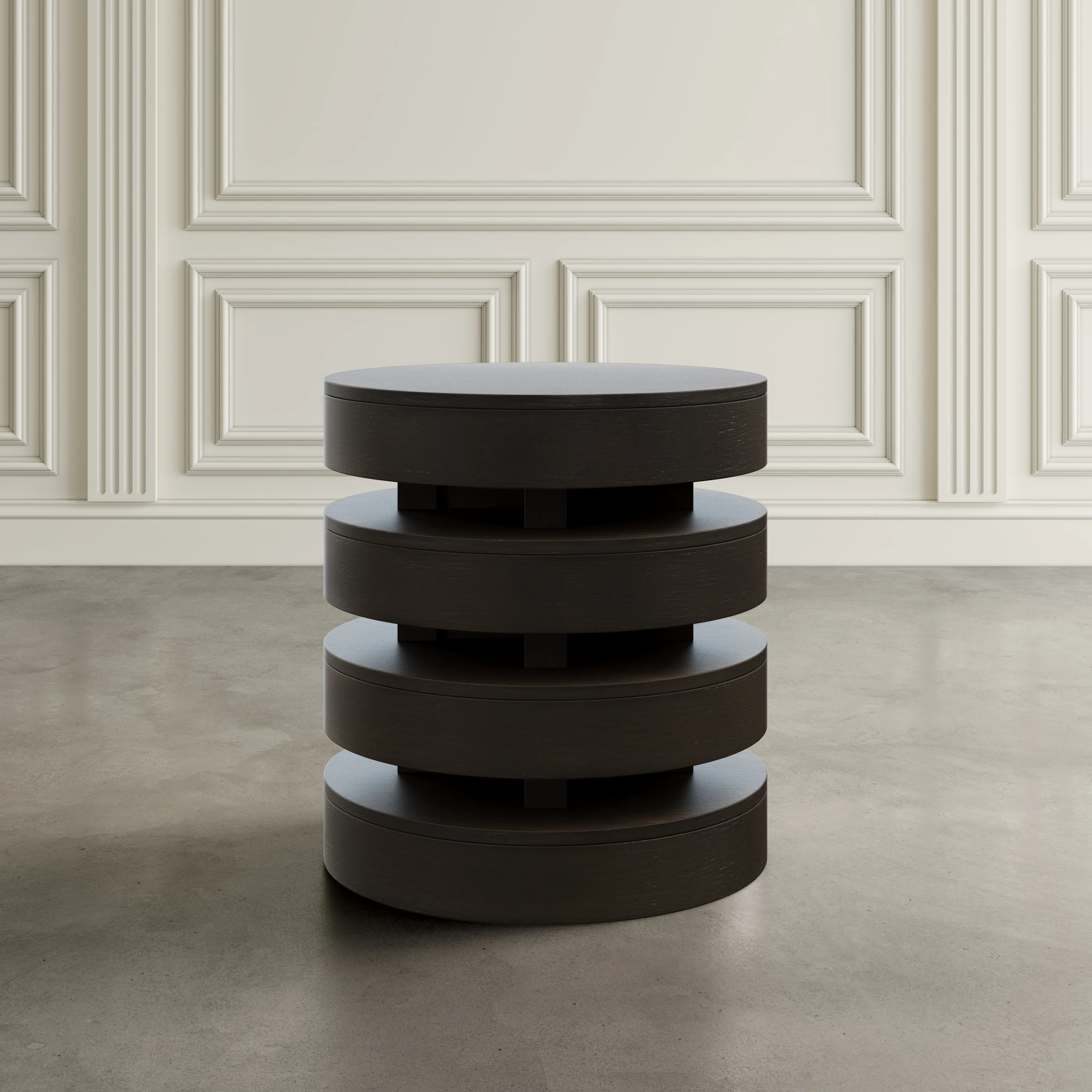 Step up your interior design game with our Brix Mid-Century Modern Layered Round End Table, a perfect companion to any seating arrangement. Echoing the design of its coffee table counterpart, this piece boasts a sleek blend of oak and engineered wood, exuding timeless appeal. Its round silhouette, measuring 22 inches in diameter and standing at 24 inches high, adds a touch of elegance to any space. With three layered levels featuring rounded edges, it offers both style and functionality. Elevate your decor with this chic and versatile end table, ideal for showcasing lamps, plants, or cherished decor pieces.
