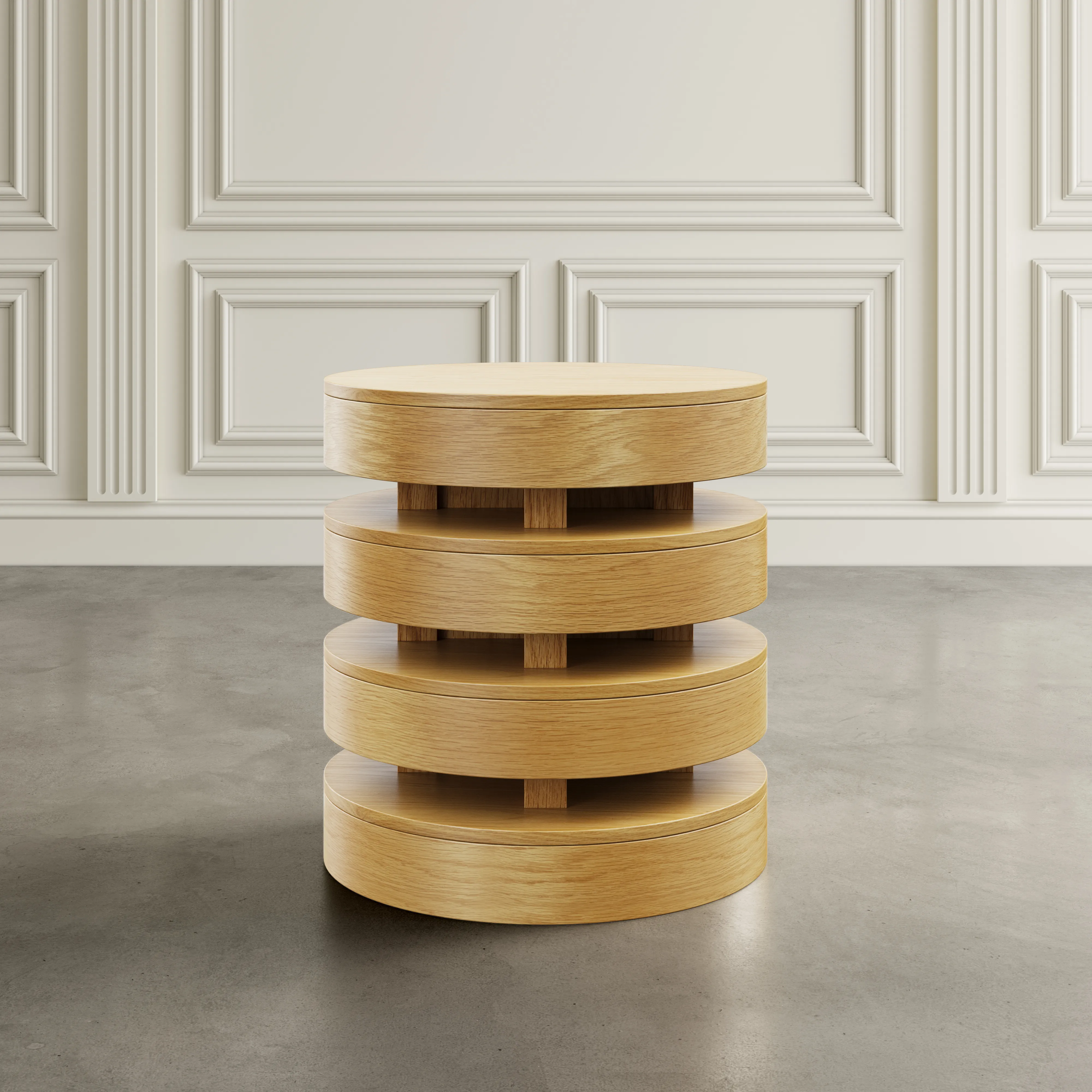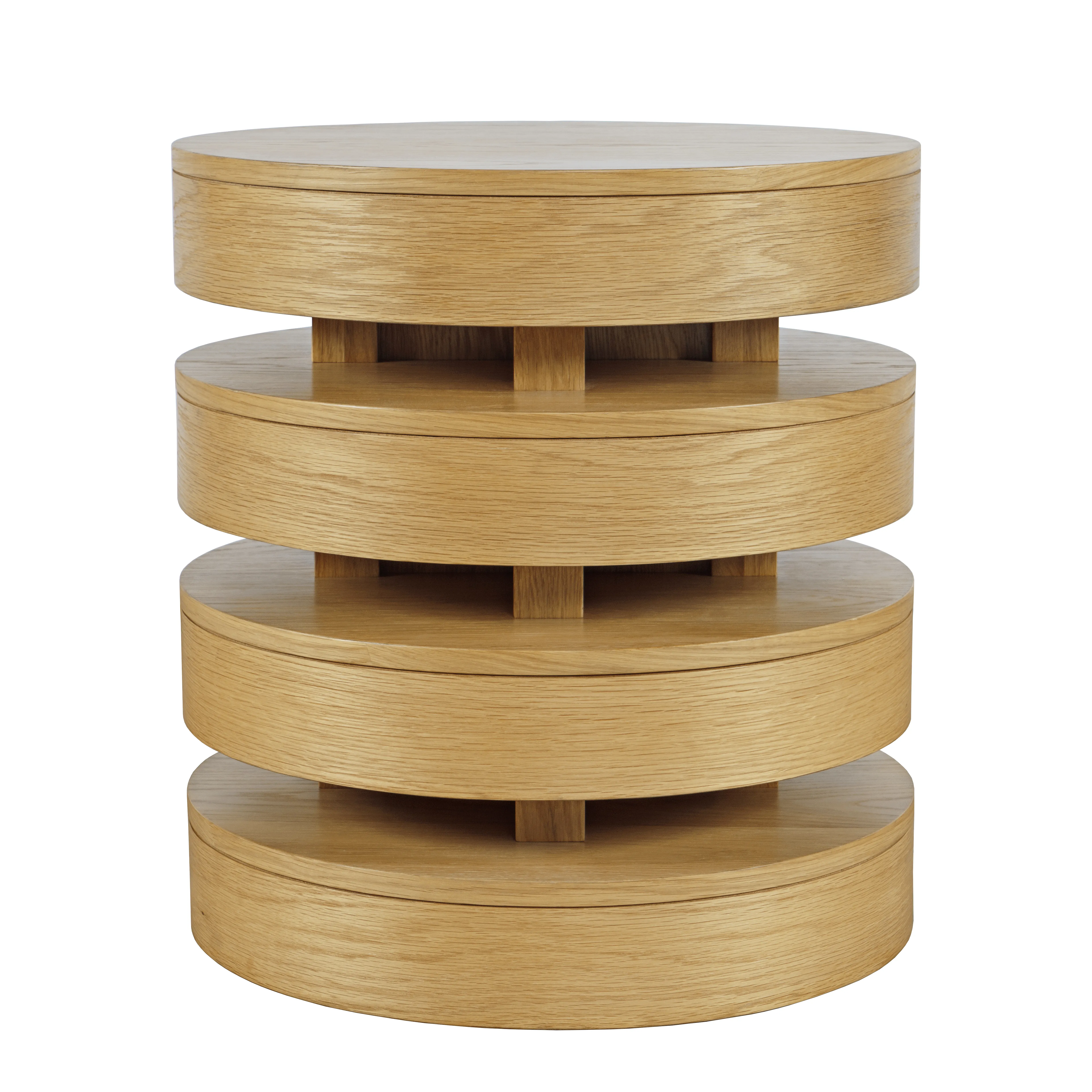 Step up your interior design game with our Brix Mid-Century Modern Layered Round End Table, a perfect companion to any seating arrangement. Echoing the design of its coffee table counterpart, this piece boasts a sleek blend of oak and engineered wood, exuding timeless appeal. Its round silhouette, measuring 22 inches in diameter and standing at 24 inches high, adds a touch of elegance to any space. With three layered levels featuring rounded edges, it offers both style and functionality. Elevate your decor with this chic and versatile end table, ideal for showcasing lamps, plants, or cherished decor pieces.