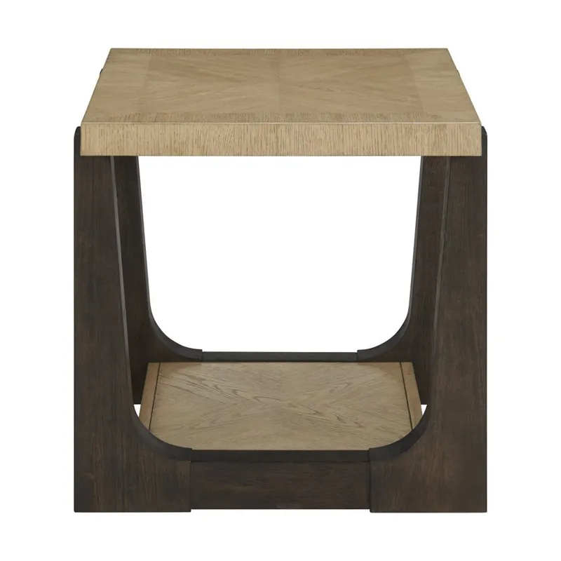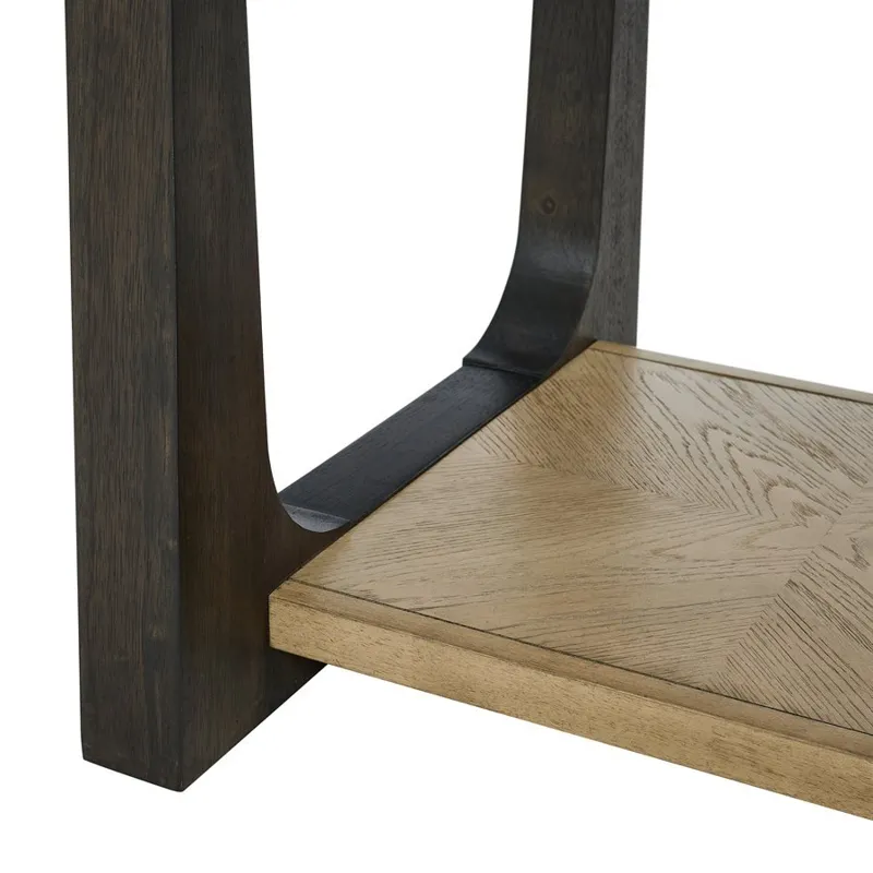 The Sutton Place occasional collection embodies relaxed contemporary style with a focus on the natural beauty of oak. Light wire-brushing enhances the tight-grain oak veneers, sturdily crafted over hardwood solids. Warm caramel tops beautifully contrast with rich cocoa legs, while a subtle diamond pattern on the table surfaces adds a touch of sophistication. Thoughtfully designed for both style and function, the collection includes a cocktail table, end table, and chairside table with a convenient storage drawer, with a lower shelf on each piece providing additional space for storage or display. A console table with optional stools offers extra seating when needed, seamlessly blending practicality with elegant design for a warm and inviting accent to your home.