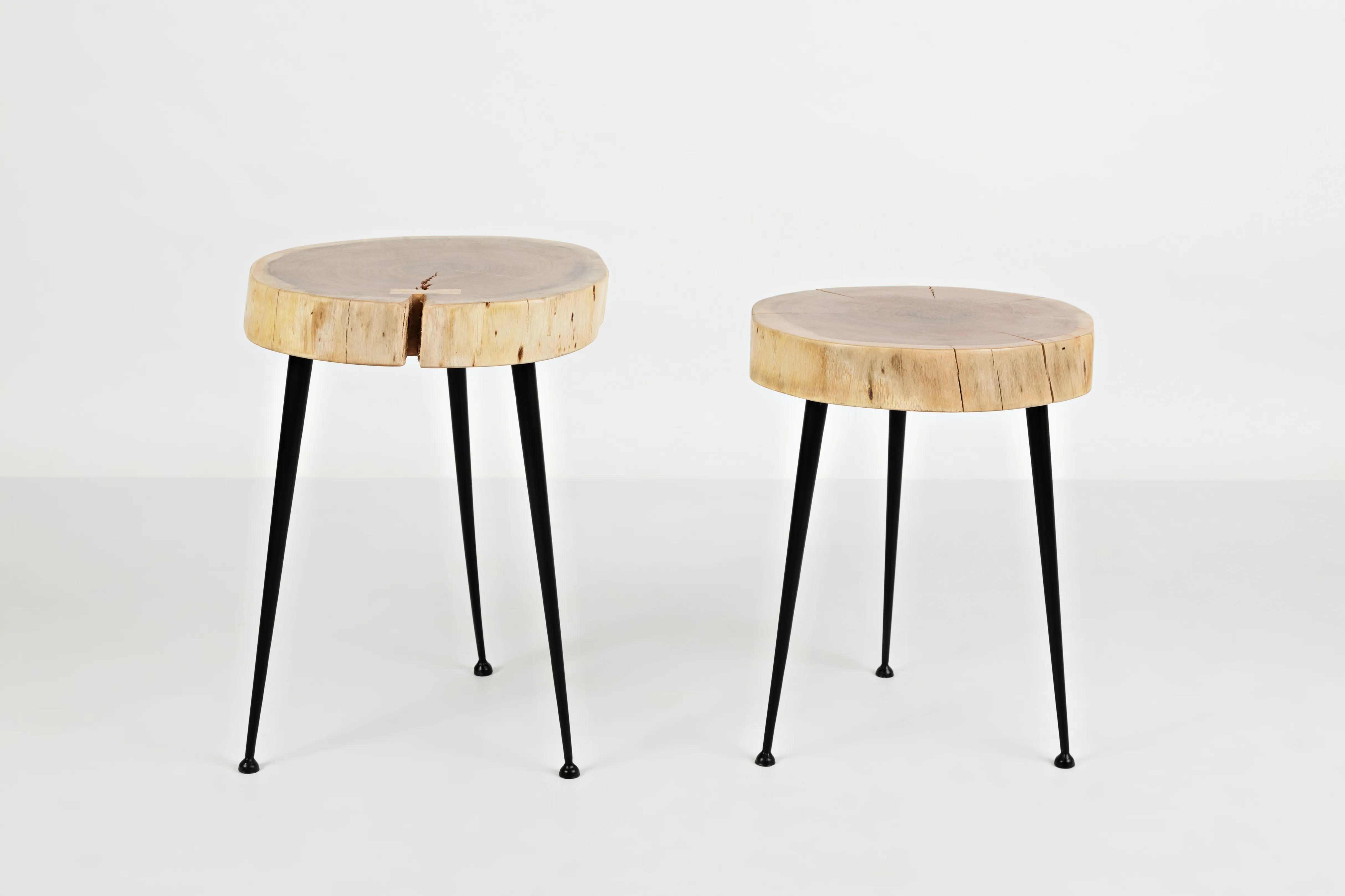 Introducing the Global Archive Rustic Modern Solid Wood Slab and Iron Accent End Tables - a stunning set of two tables that exude rustic charm with a modern twist. The tabletops are made from slabs of solid acacia hardwood with a natural live edge, giving each table a unique and organic feel. The metal legs provide a sturdy base and a touch of industrial flair. These accent tables are the perfect addition to any living space, adding both functionality and style. Whether used as end tables or nightstands, the Global Archive Rustic Modern Solid Wood Slab and Iron Accent End Tables are sure to impress