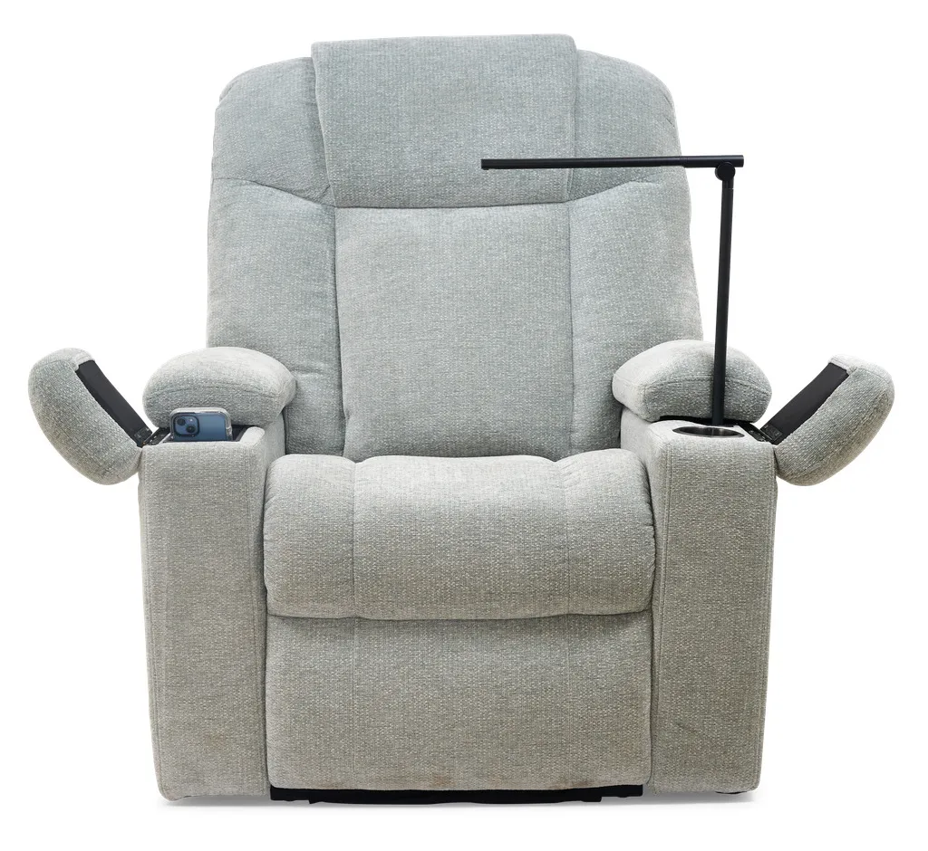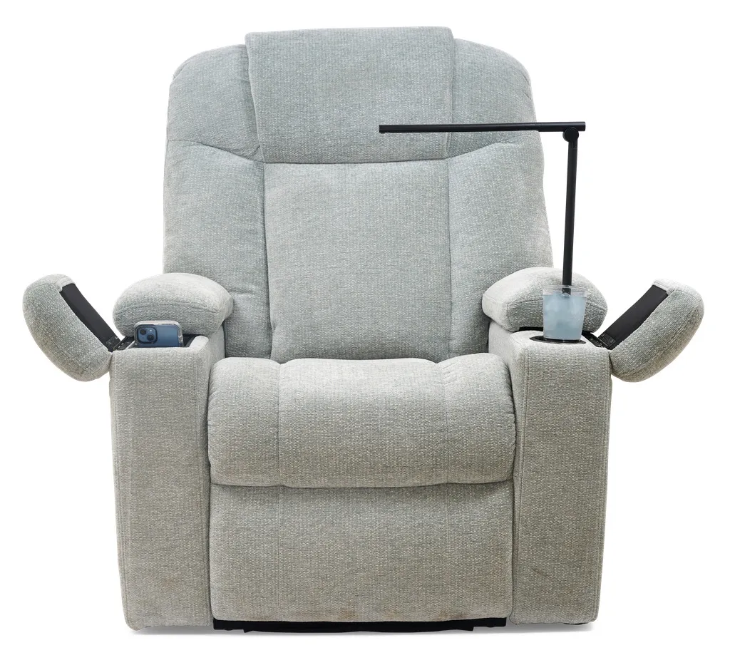The Venice is designed for total relaxation. This chair features a generously padded seam back, plush chaise pad, and a sleek open-arm design that includes a built-in cup holder, hidden storage, a power port with a removeable reading light and tray table, a wireless phone charger, and a USB port – all within arm’s reach