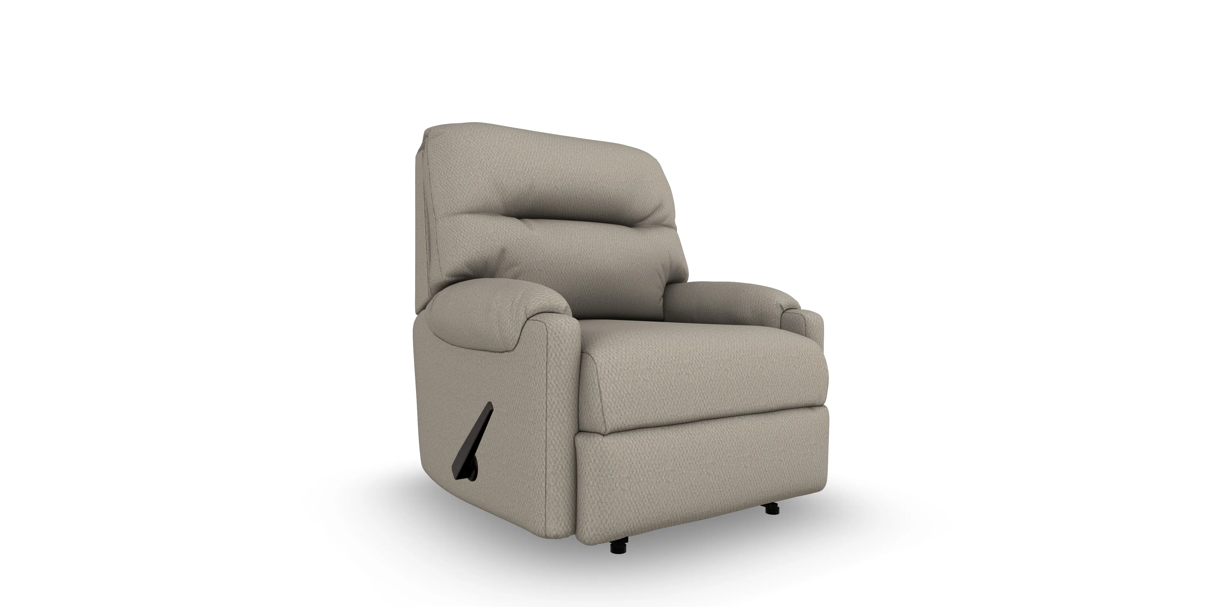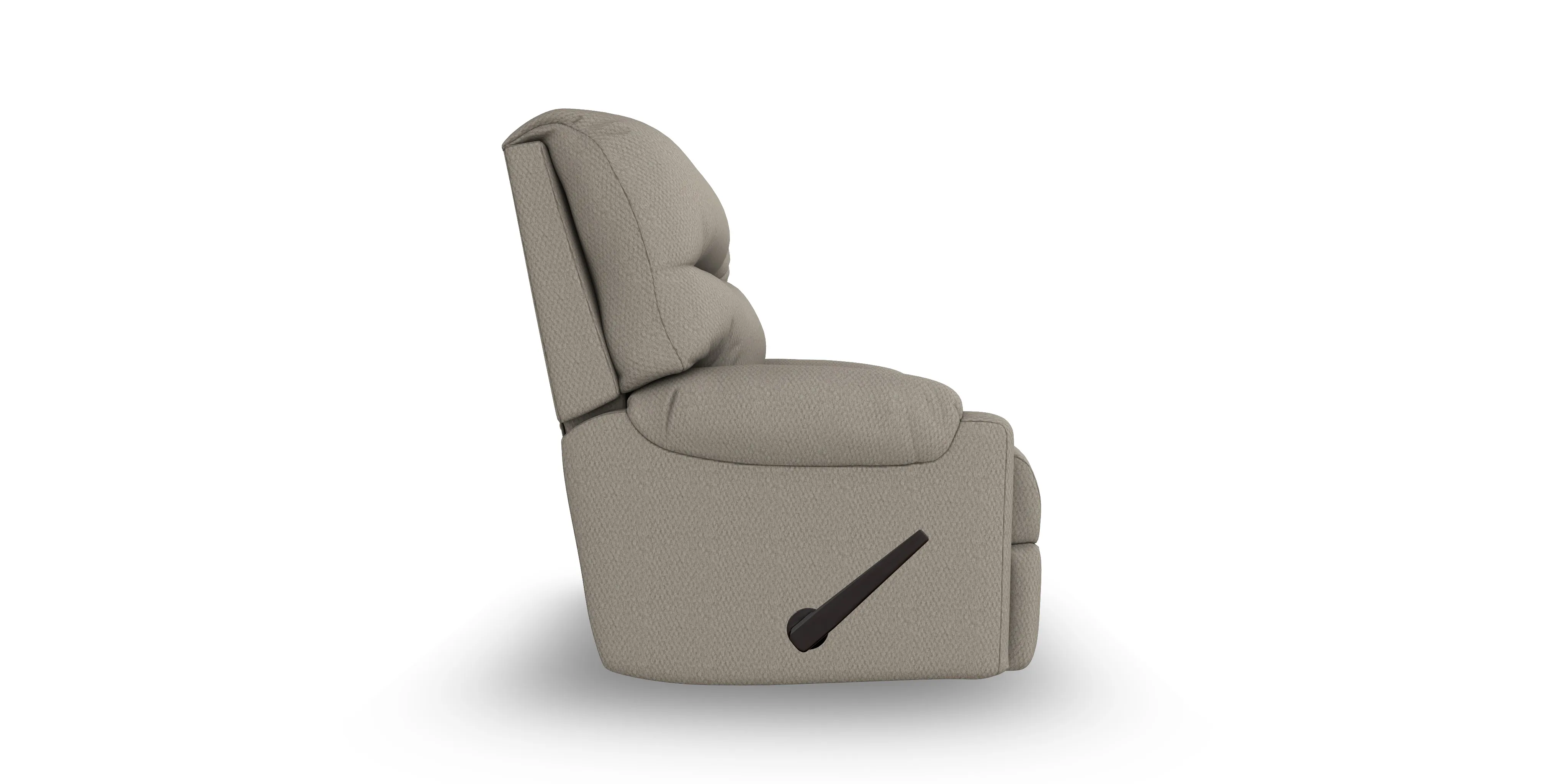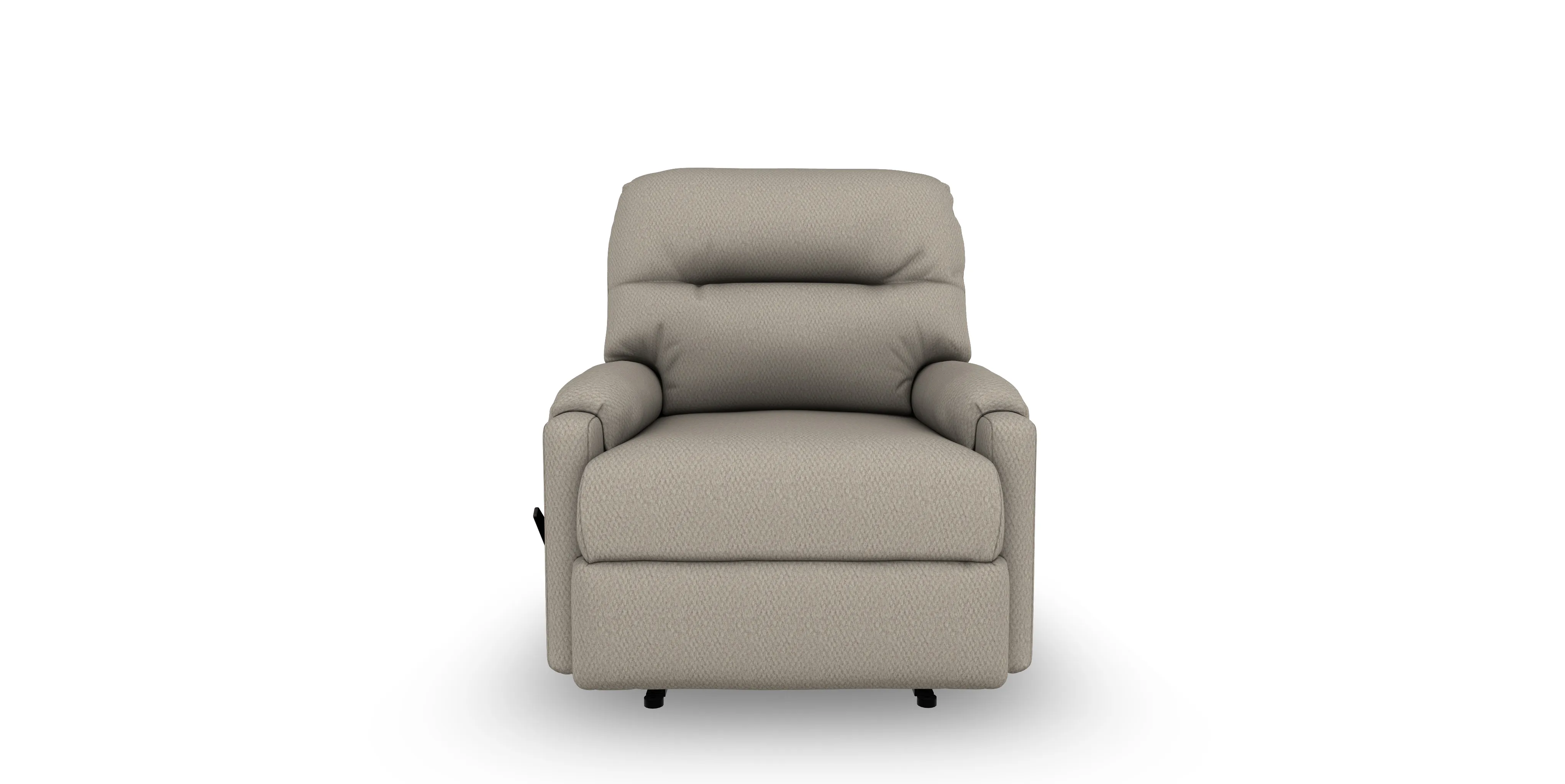 Take a relaxing seat in this smaller scaled, cushioned recliner. The soft curves and padded arms bring great comfort to this chair. Not only is this chair comfortable, but it is also stylish. The exterior handle allows a smooth, effortless reclining motion. Pair this recliner with a sofa or loveseat for a complete living room setting. Choose from hundreds of Best Home Furnishings fabrics and over 45 leathers to customize your furniture collection to reflect your personality.