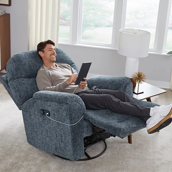 Also available as a traditional recliner with an outside handle, or with the convenience of power. Enjoy the cutting-edge design of our easy-to-use Comfort Dial that also features a USB charging port. Effortlessly recline at the turn of a dial stopping at any of your favorite positions. Deluxe your comfort by enjoying the Tilt Headrest feature for optimal head and neck support while reading or watching TV.