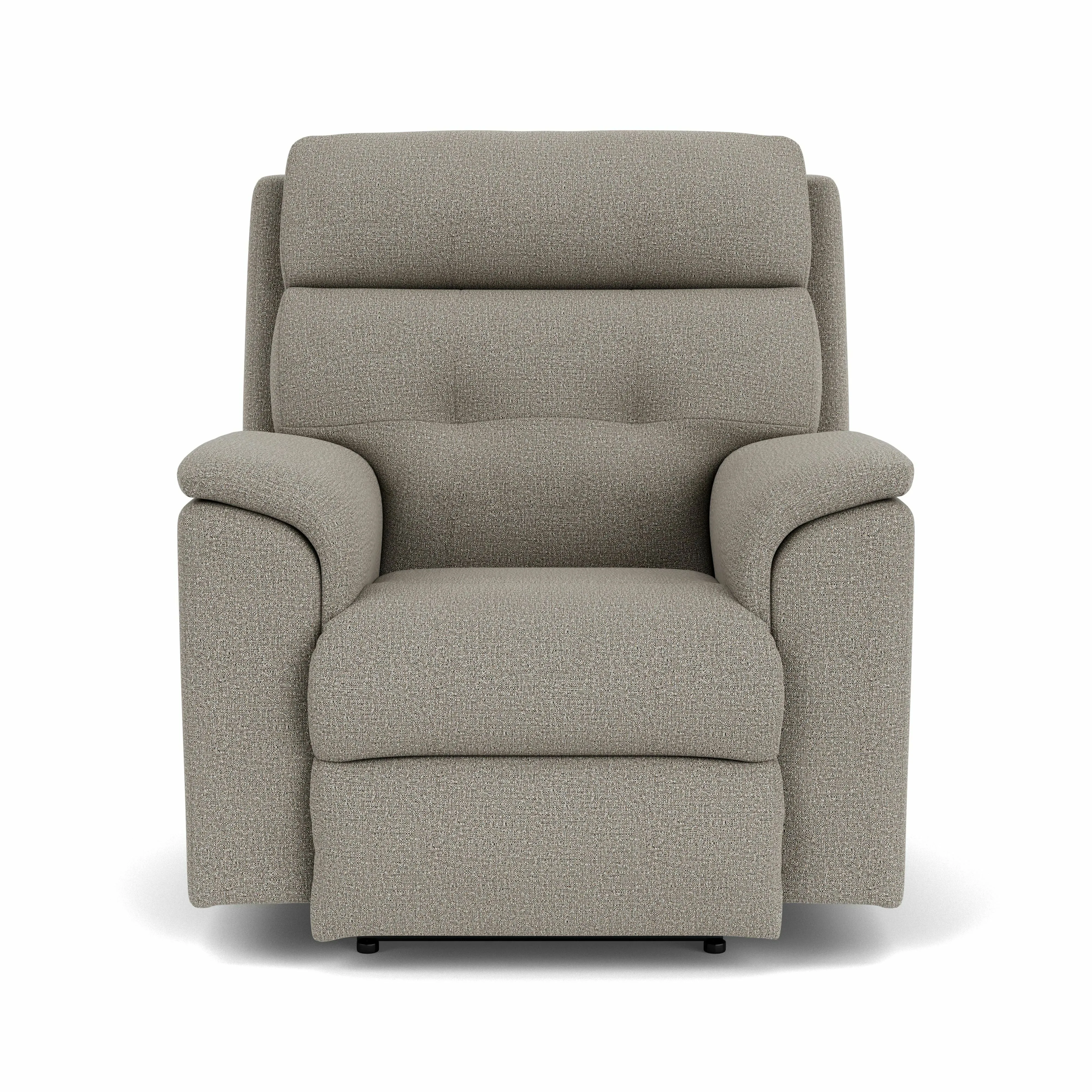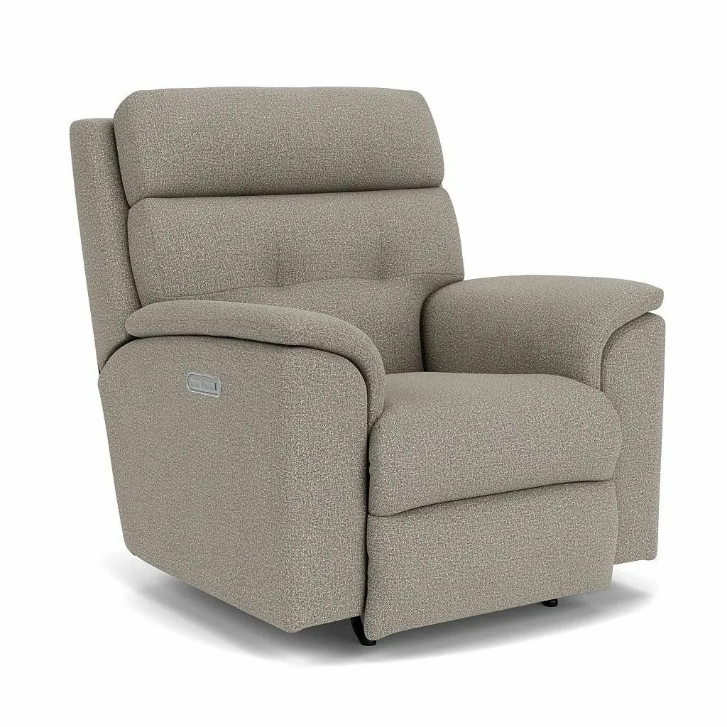 Mason is a transitional motion style with smooth lines and understated elements. It features a generously scaled pad-over sloped arm, conventional flat seat and a divided chaise pad design. This power rocking recliner's high-divide back cushion provides optimal headrest positioning and biscuit tufting on the lower back provides optimal back support. The Blue Steel Spring™ ensures this piece is in it for the long-haul. The power button adjusts the headrest and recline independently, letting you change angles from an upright to a fully reclined position - but not lose your ability to watch your favorite game or show when fully reclined by using the power headrest option to raise your head and neck. Charge your electronics with the provided USB port in the power button. Mason is sure to provide a fashionable look to your space.