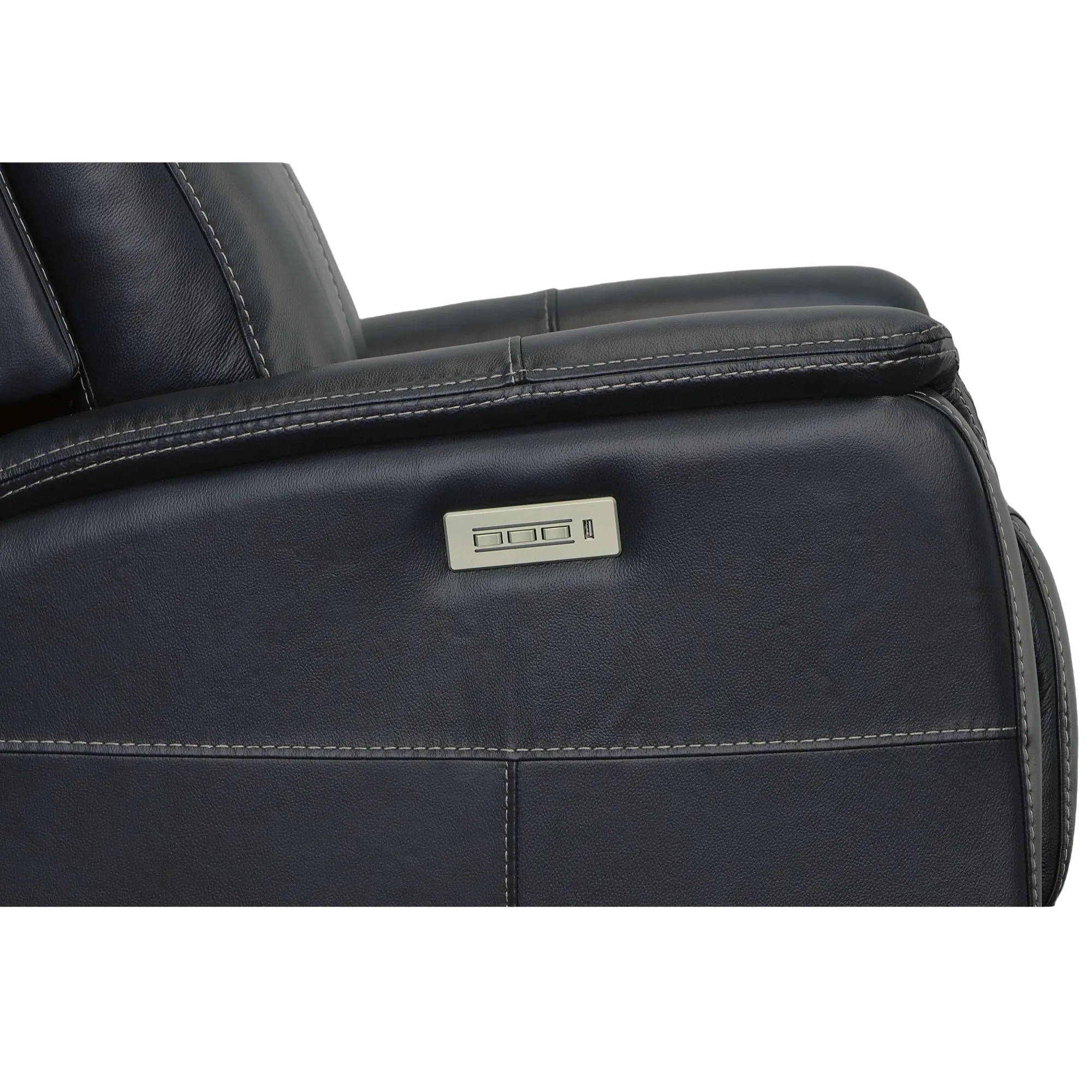 Power button independently controls the headrest, lumbar and recline for a personalized sit, and includes a USB-A port for charging electronics