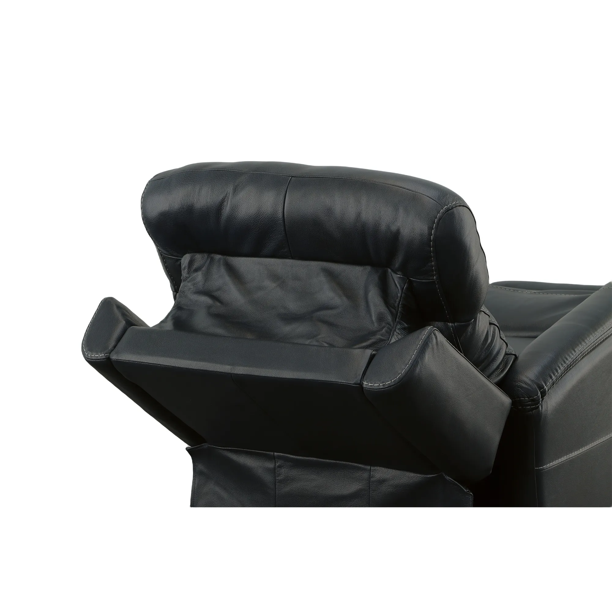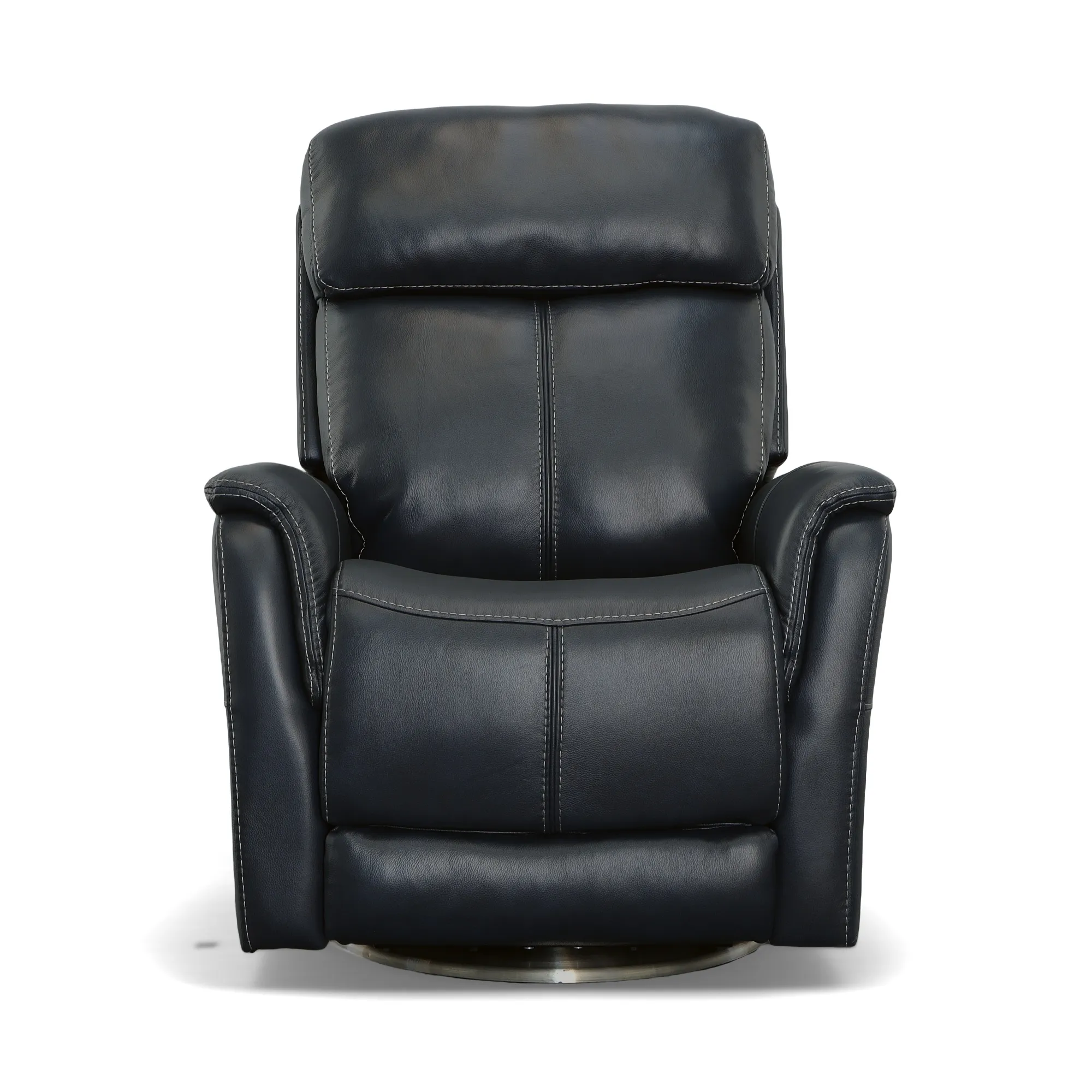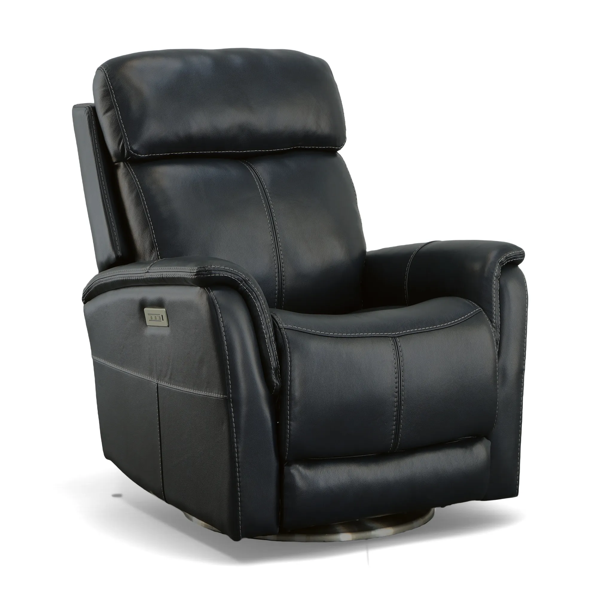 Enjoy an extensive range of motion in a chair that looks as good as it feels with the MOV 360 Degree recliner. Whether you are gaming, chatting or watching a movie, you can stay active as you sit with help from a swivel that rotates a full 360 degrees. Pad-over arms are paired with a divided backrest for head and lower back support, while an extended footrest accommodates taller users. Flexsteel's patented Blue Steel Spring™ seat system provides long-lasting seat support that you can count on. Move seamlessly from sitting to fully reclined with a power button that allows you to customize your comfort. Upholstered in a premium, dark blue leather with a welt trim and heavy thread top-stitching for a refined look, Degree is sure to make a statement in your home.
