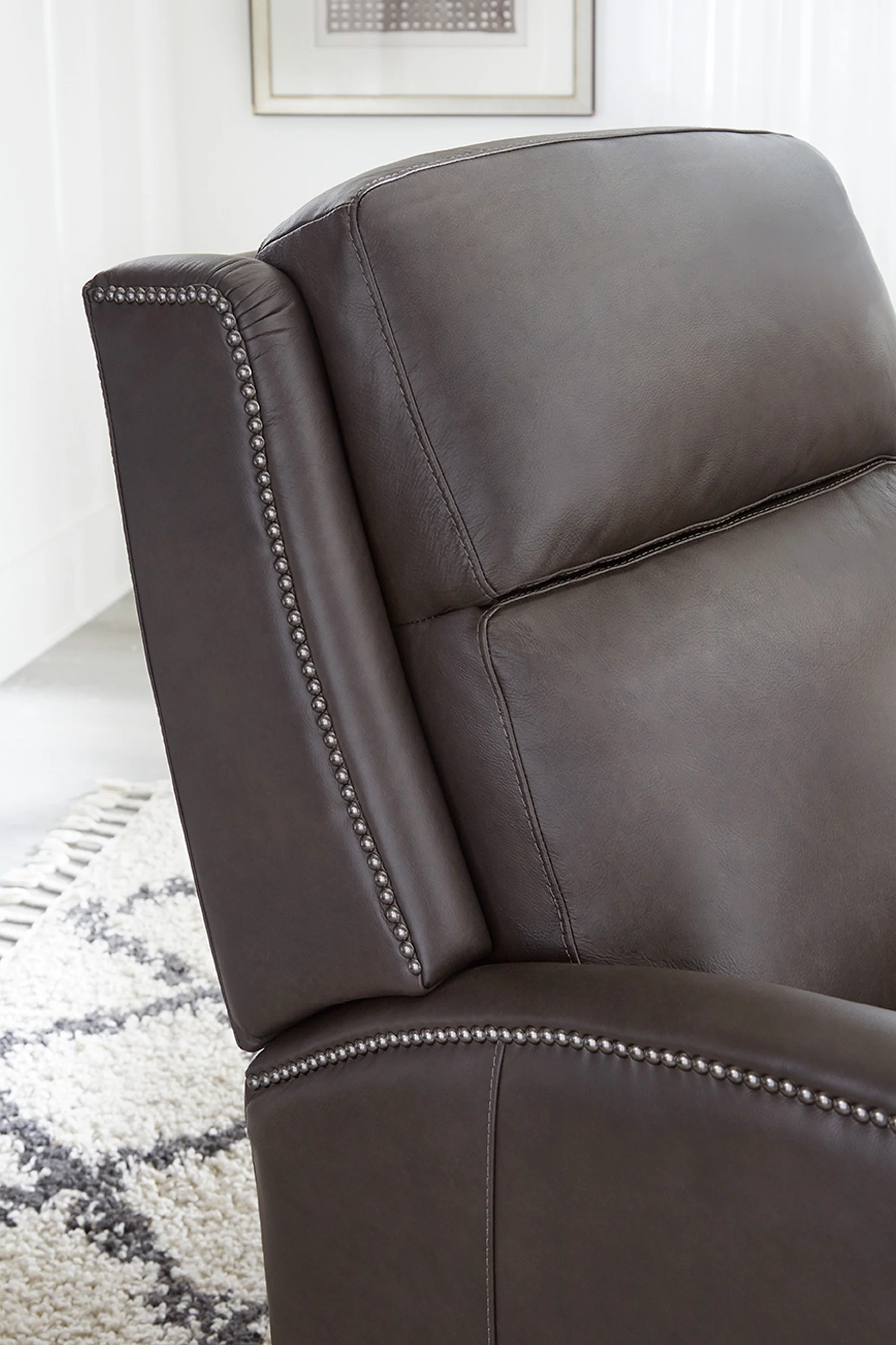 - Decorative nailhead detail on wings, arms and footrest