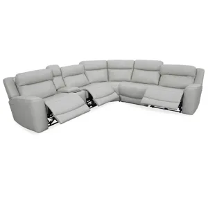 Calgary is a chic and fashionable sectional featuring power recline and headrest controls and allows you to adjust your seating position easily. The over-padded headrests provide extra comfort, while the wide, sloped arms add to the recliner's stylish design. It is crafted using sustainably sourced woods in a completely solar-powered facility, ensuring a commitment to environmentally friendly practices.