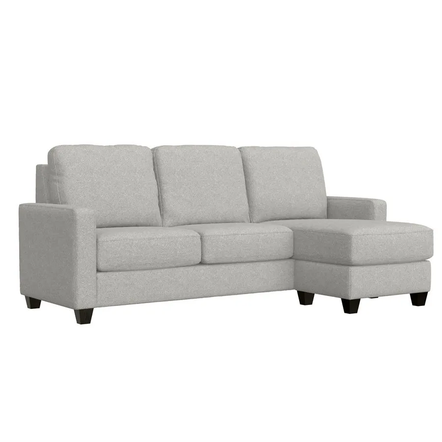 Masquerading as a straightforward chofa and ottoman, the contemporary Dawson disguises easy comfort. The chaise can switch between the left or right side so you don’t have to commit to a one room layout. Tuck blankets and pillows into the storage ottoman at the ready for curling up cozy. Push it up against the loveseat to instantly create additional leg space while you drop down the center back cushion to reveal two cupholders and USB-A and -C chargers just waiting for you to binge watch your new favorite show. Snuggled up in a textured gray fabric, Dawson is the ultimate in casual, effortless style with convenience.