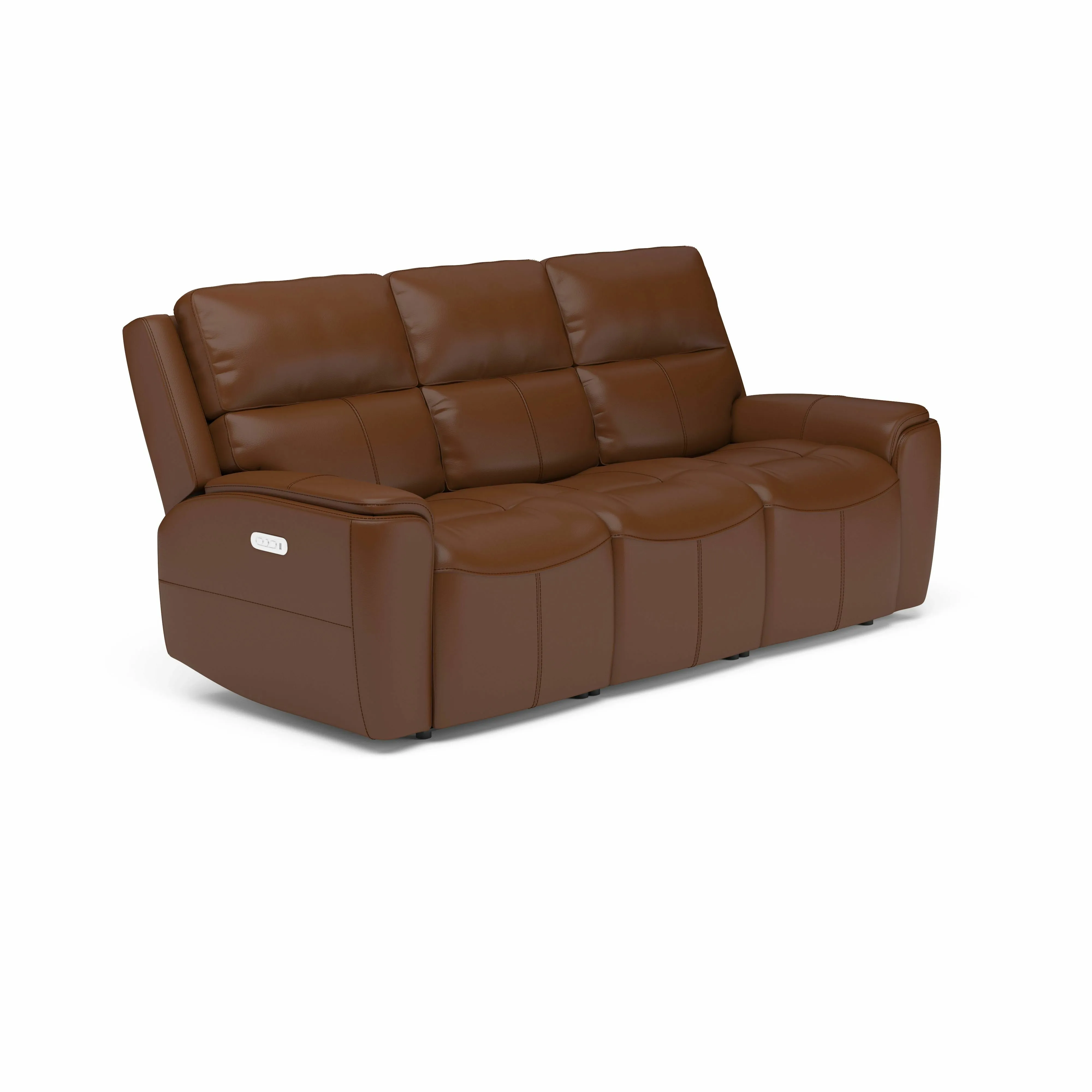 Keep your family comfy with the Ellis Power Reclining Sofa with Power Headrests. Using a power control that independently adjusts the headrests and recline, those sitting on either end can put their feet up while watching TV. USB charging ports built into the controls provide convenient access to power for your devices, so you can stream movies for hours at a time. Additional comfort enhancing features include a contoured seat with waterfall chaise and divided back cushions with kidney support that relieve tension in your back. Our patented Flexsteel DualFlex Spring Systemâ„¢ offers a mix of flexibility and firmness as you sit and ensures comfort and quality that will last for years to come. Thoughtful design details, including shell track arms and durable heavy-thread top-stitching, give this sofa an elevated look. And with two color options of our premium leather upholstery, you can choose a design that will enhance your decor.
