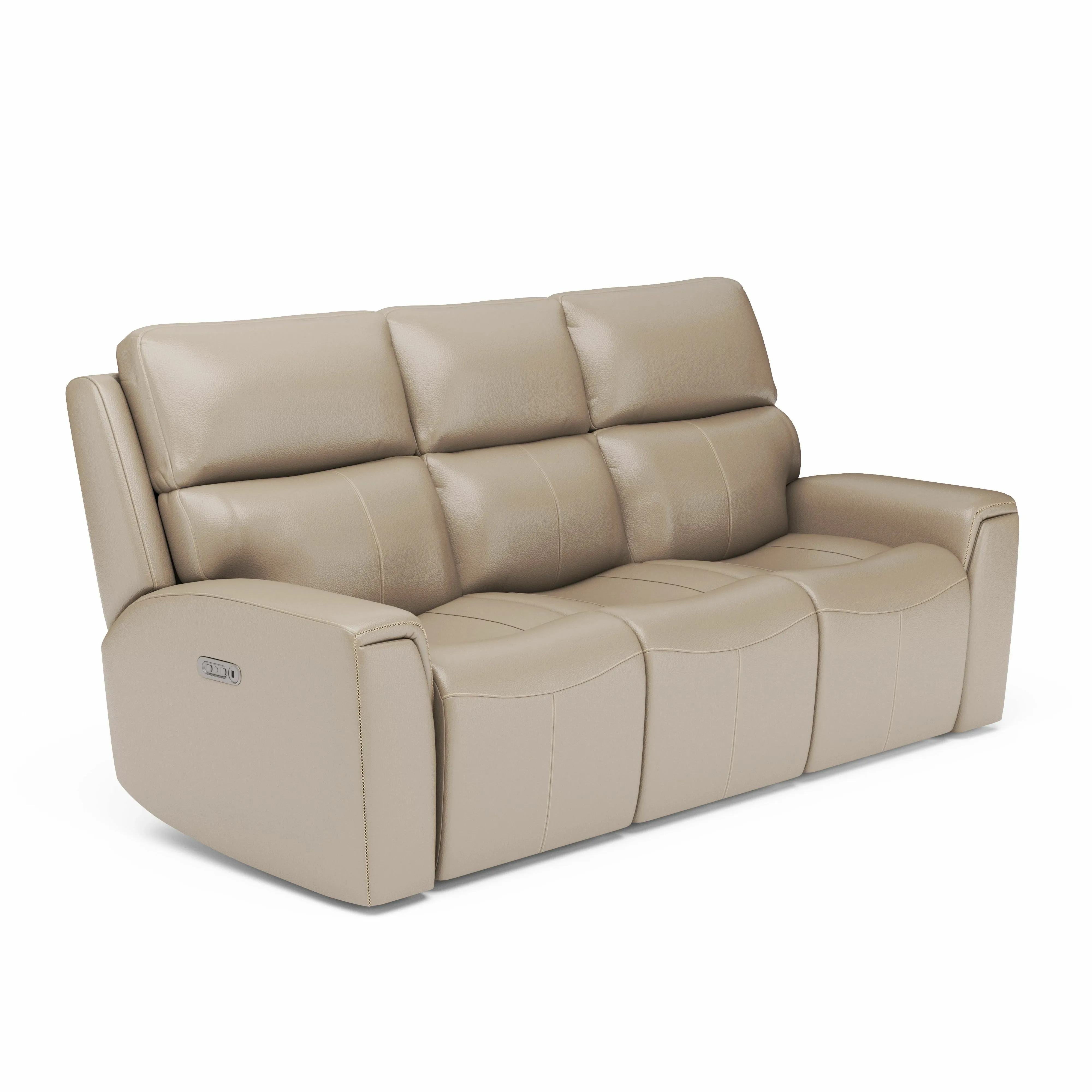 Transitional design with clean lines. Jarvis is a transitional motion style with clean lines and smooth shapes. It showcases a divided back, double needled interior, and a fashionable pad overtreatment with a decorative cross stitch.This power reclineing sofa features a tapered track arm with a set back padded wing. Its soft, contoured seat has a waterfall chaise. The Blue Steel Spring ensures this piece is in it for the long-haul. Recline. Relax. Repeat. Seating that puts your mind and body at ease. Achieve the optimal neutral body position with our Zero Gravity recline technology that reduces the forces of gravity to provide comfort and well-being.The power button adjusts the headrest and recline independently, letting you change angles from an upright to a fully reclined position - but not lose your ability to watch your favorite game or show when fully reclined by using the power headrest option to raise your head and neck. Charge your electronics with the provided USB port in the power button. Jarvis' understated and trendy design makes it a great fit for many room designs.