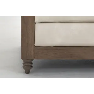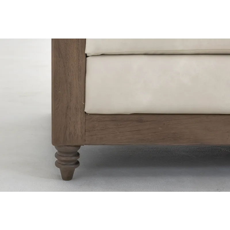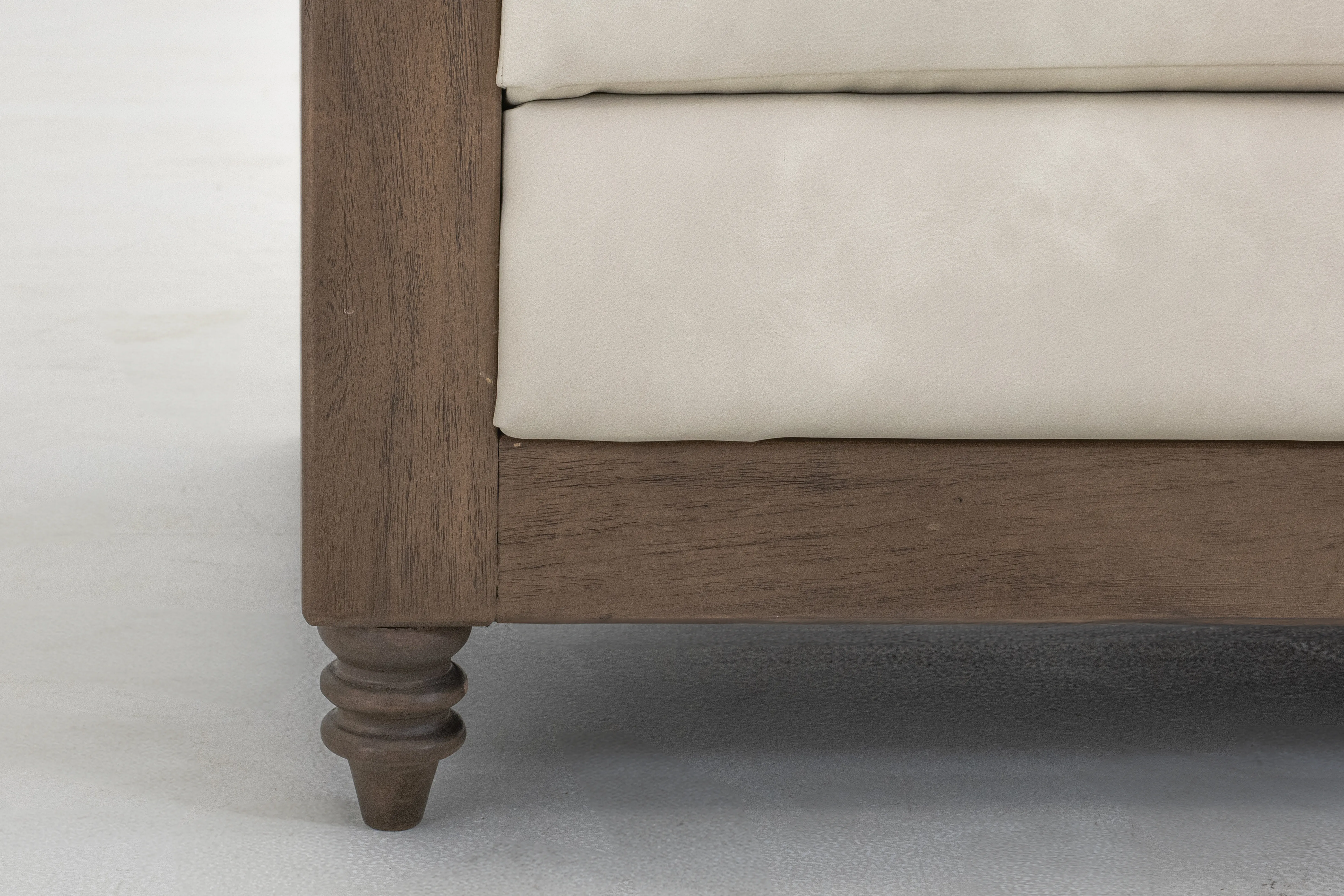 - This piece features a solid wood frame and legs, with plywood construction for added durability.