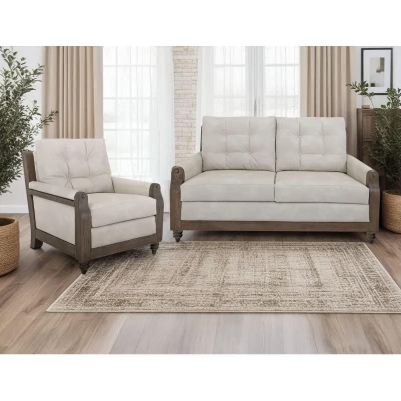 - Fiber wrap on the seat and back surrounds the polyurethane cushions for softness and support.