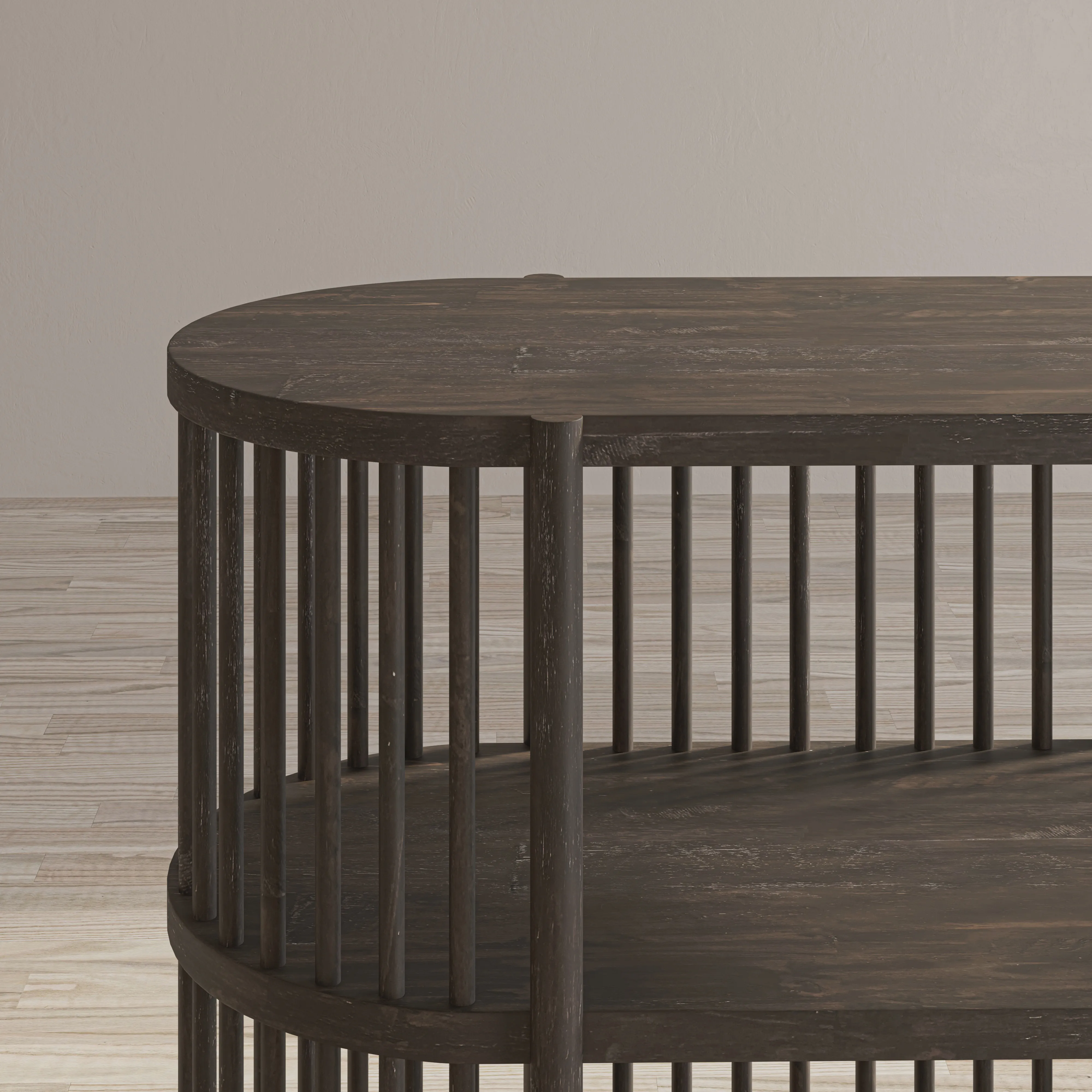 • -Solid Acacia Hardwood -12.25" Shelf Clearance -Open Storage Design with Handcrafted Spindles -Storage for Bar Equipment or Books -Unique Natrual Distressing -Fully Assembled -
