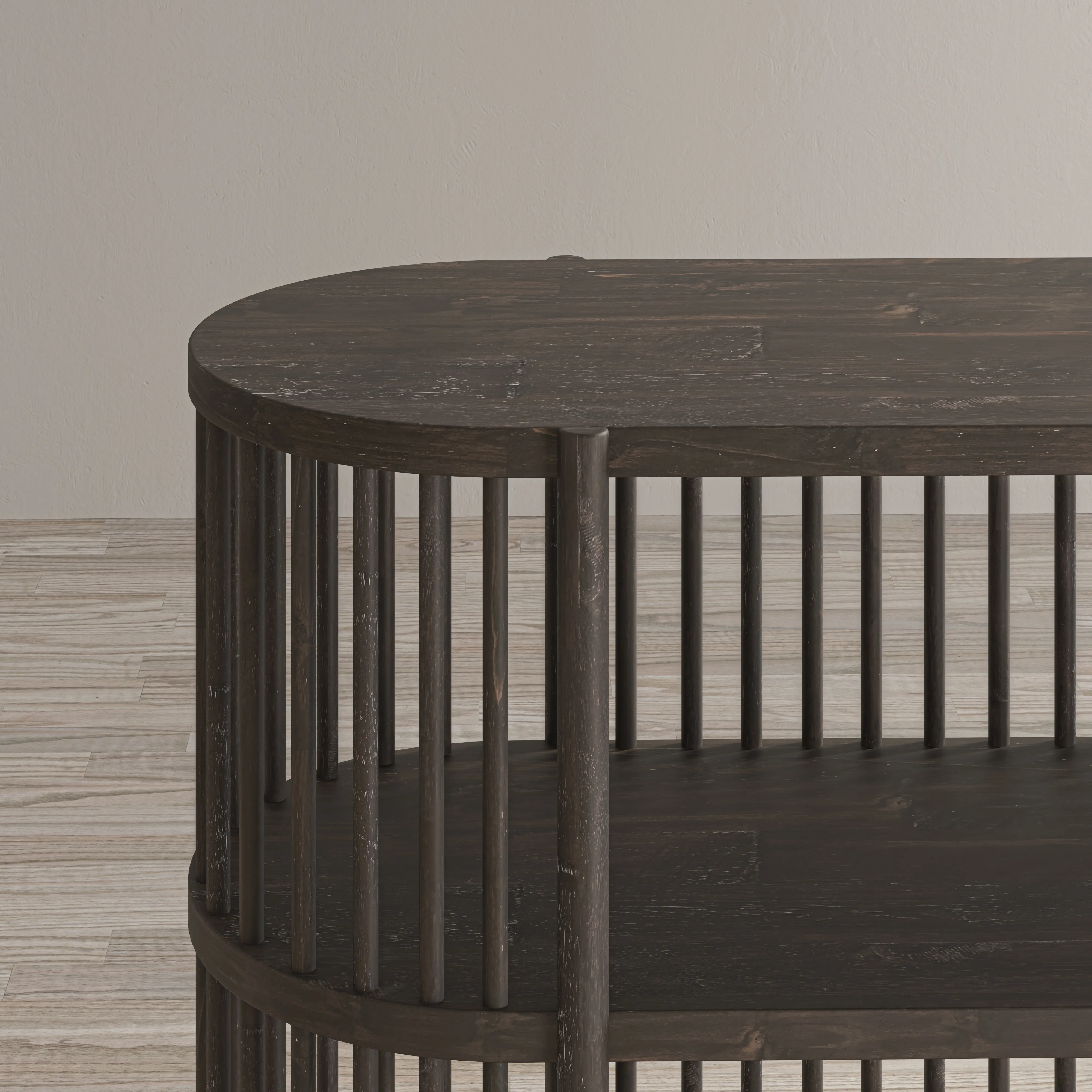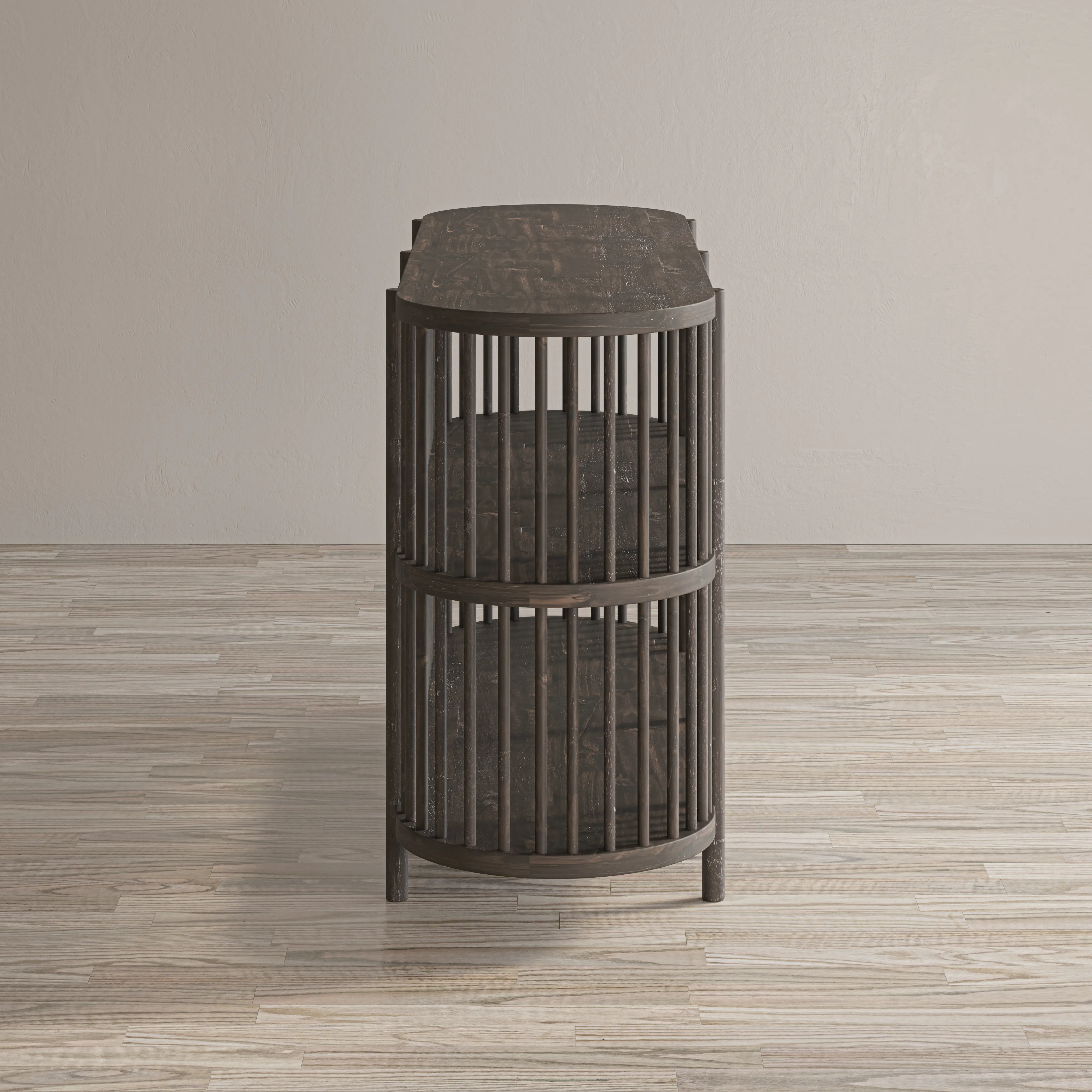 • -Solid Acacia Hardwood -12.25" Shelf Clearance -Open Storage Design with Handcrafted Spindles -Storage for Bar Equipment or Books -Unique Natrual Distressing -Fully Assembled -