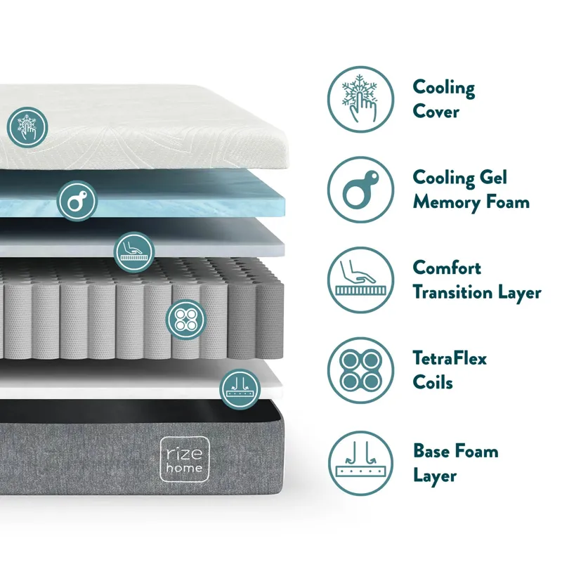 • Hybrid Versatile Comfort with Cooling Gel Memory Foam and TetraFlex Coils