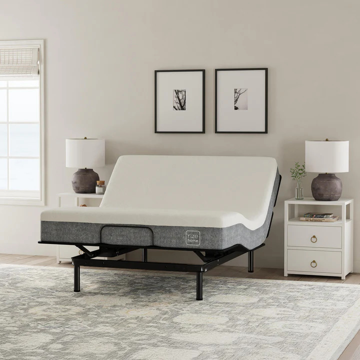 A queen-sized bed made of two separate mattresses that allows for personalized feels and adjustability. 60" wide x 80" long