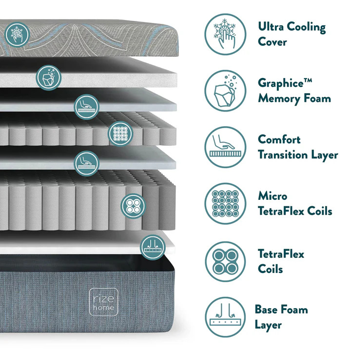 - Hybrid Versatile Comfort with Graphice™ Memory Foam, Micro TetraFlex Coils, and TetraFlex Coils