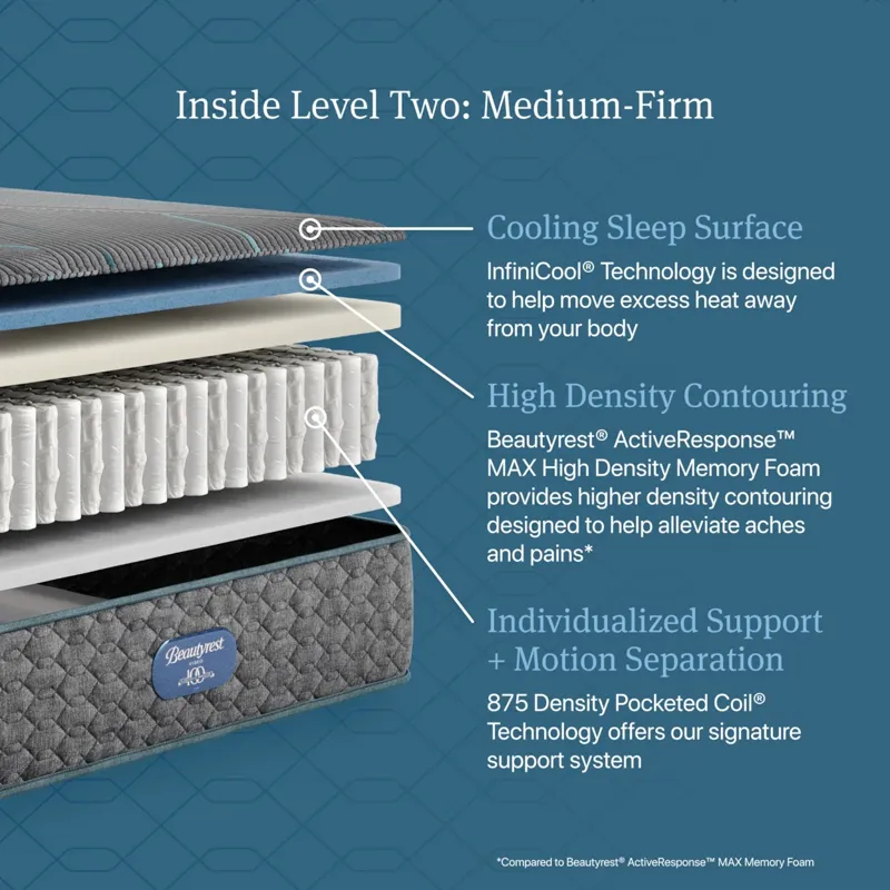 Beautyrest® ActiveResponse™ MAX High Density Memory Foam offers high density contouring comfort that is designed to help alleviate aches and pains